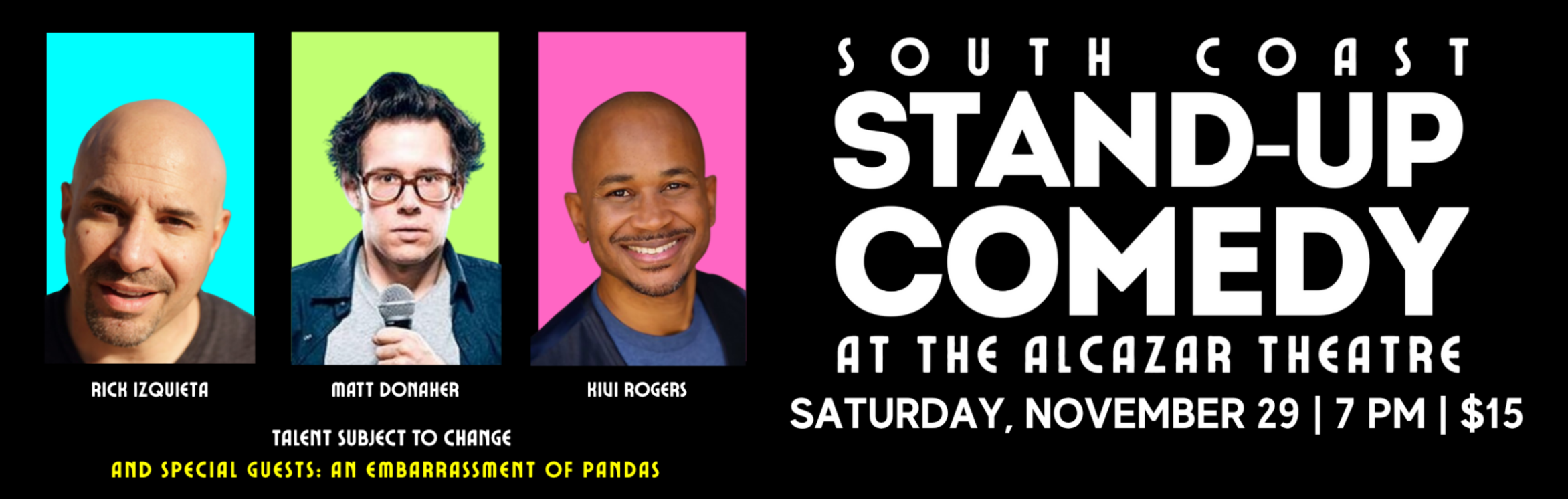 When the nights get cooler, the laughs get hotter at Carpinteria’s Alcazar Theater! Settle in for a night of smart, clean comedy featuring a trio of crowd-favorite headliners, plus our high-energy improv team to kick things off.