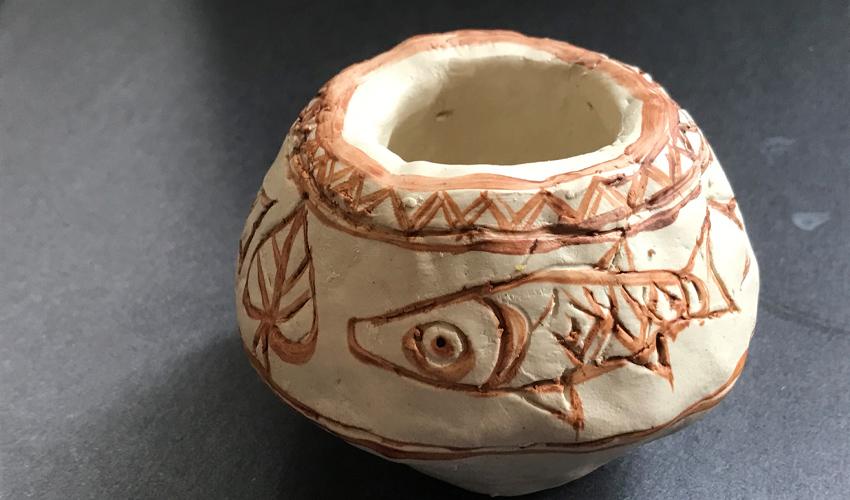 Visitors of all ages are invited to participate in this hands-on informal workshop with SBMA Teaching Artists. Each month explore a different medium—clay, metal, ink, wood, photography, or paper—inspired by works of art in the Museum’s collection or special exhibitions. In May, create a pinch pot from air dry clay. Draw animals and patterns into the clay, then finish with a watercolor wash, inspired by Shallow Bowl with Pipal Leaves Fish Motif (3500 -2500 BCE).