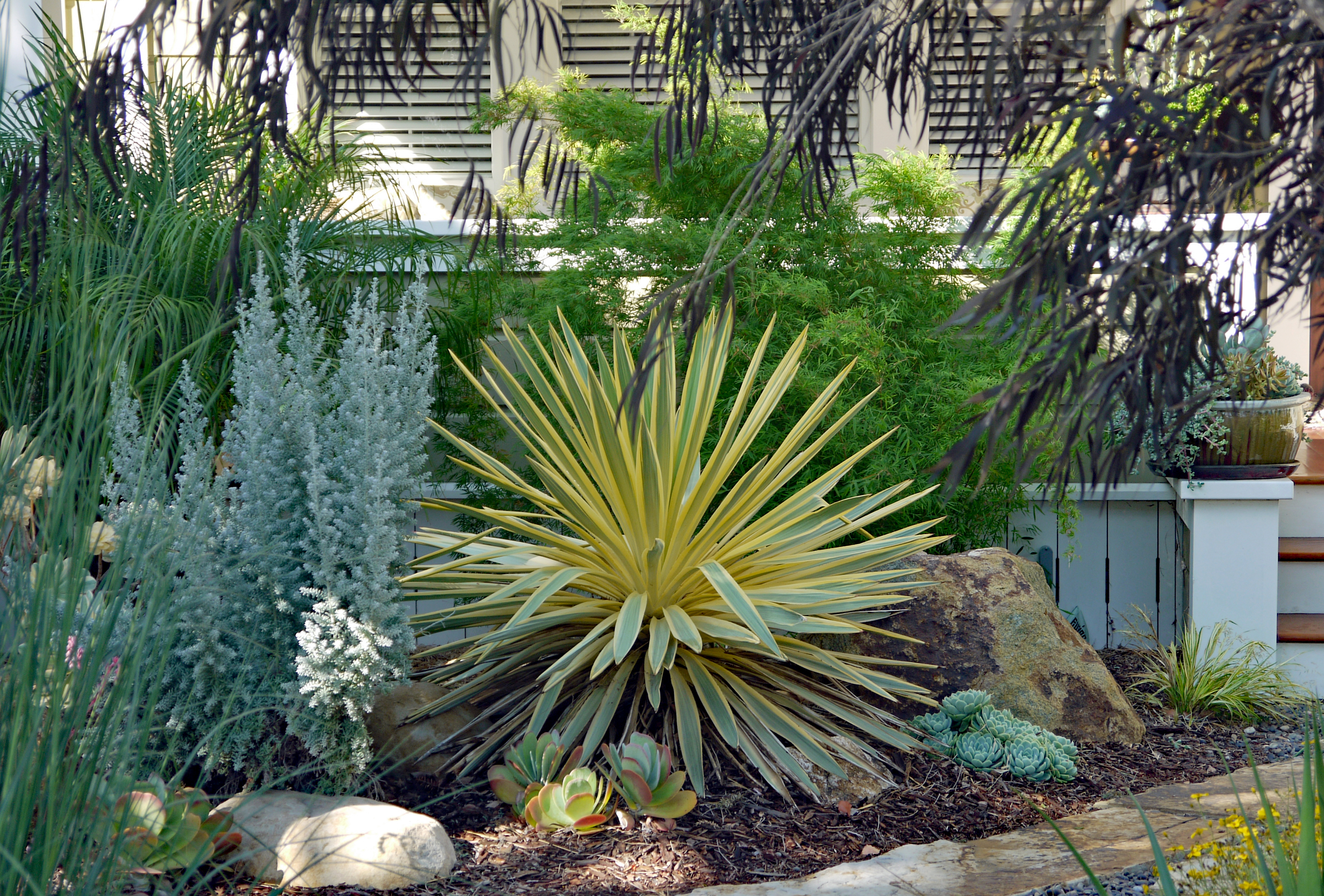 Local landscape designer Joan S. Bolton will take us on a photographic journey through countless ways we can incorporate drought-tolerant succulents into our gardens. This is a designer’s notebook of ideas for weaving these fun, adaptable plants through your landscape, whether as diminutive jewels in a pot on a balcony; ground covers in broad swathes; interesting specimens; or solitary, large focal points. From her designer’s perspective, she will also suggest succulents for texture, form, color, sun, or shade–plus offer tips and techniques for successful plantings.