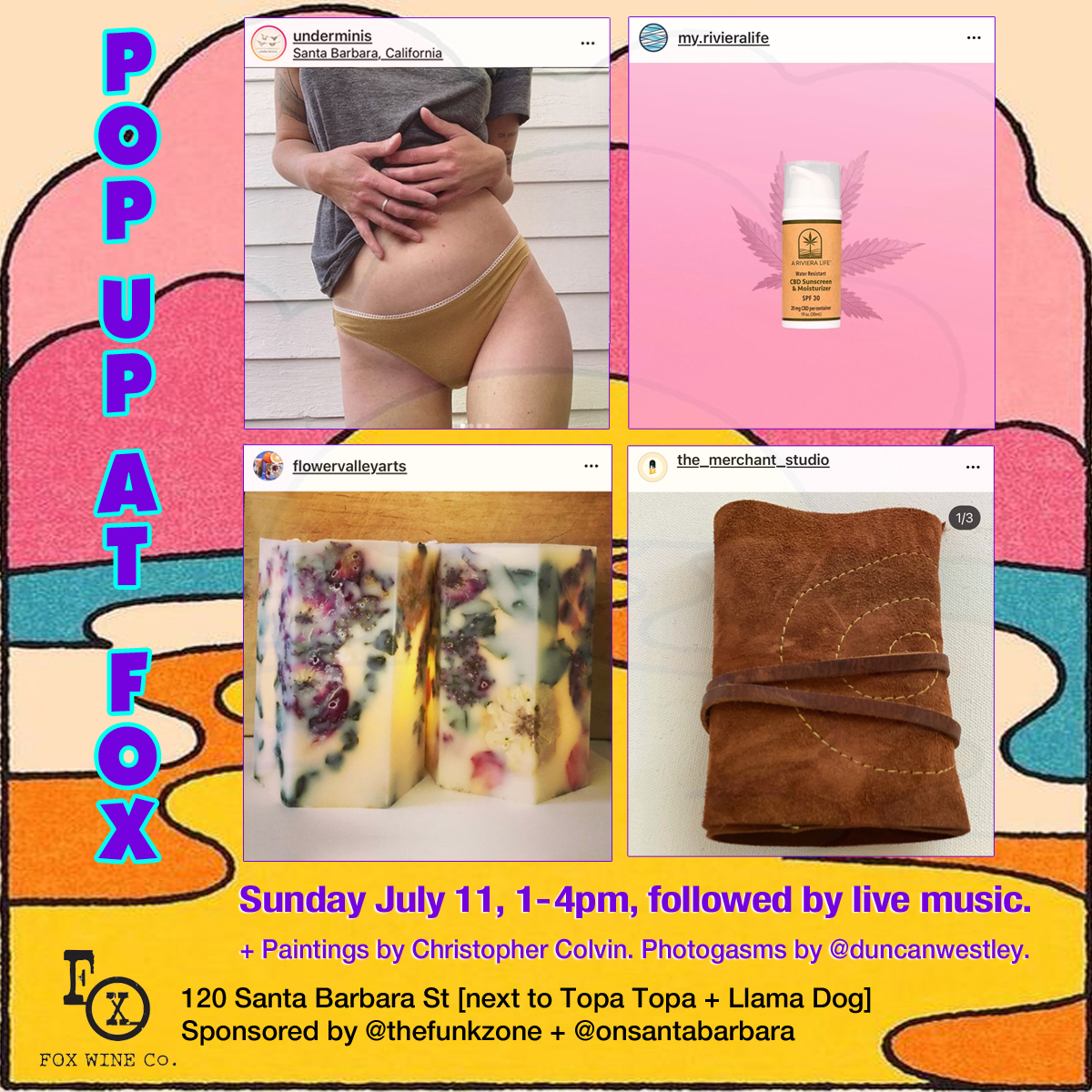 Join us at Fox Wine Co. for Summer Luvin’ Pop-up and meet great local artist and makers.