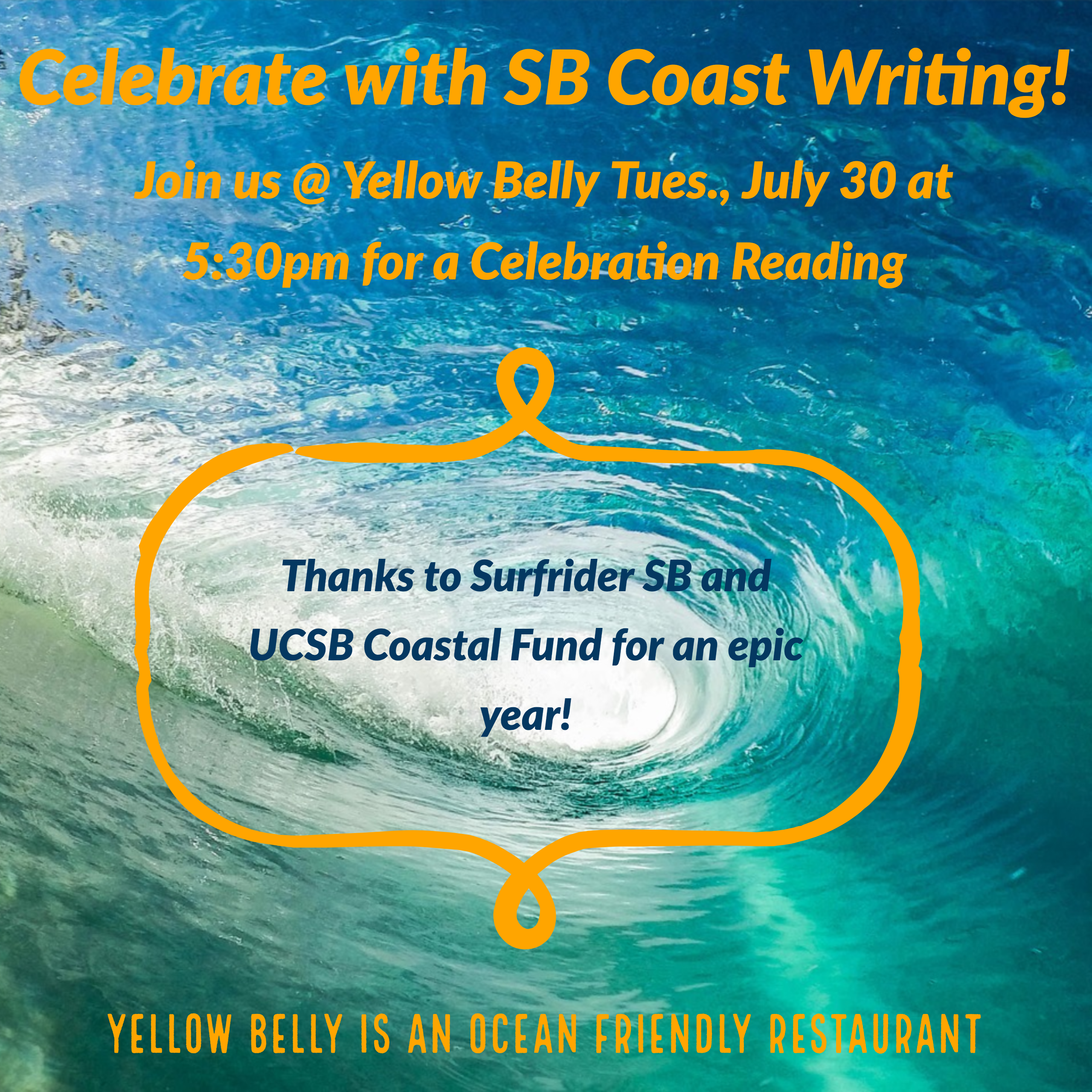 We are celebrating the culmination of our year-long public writing workshops funded by the UCSB Coastal Fund. Please join us on the back patio at Yellow Belly, one of our amazing Ocean Friendly Restaurants, to hear some of our participants read their work. We hope you’ll join us for a beer and happy hour! See you soon.