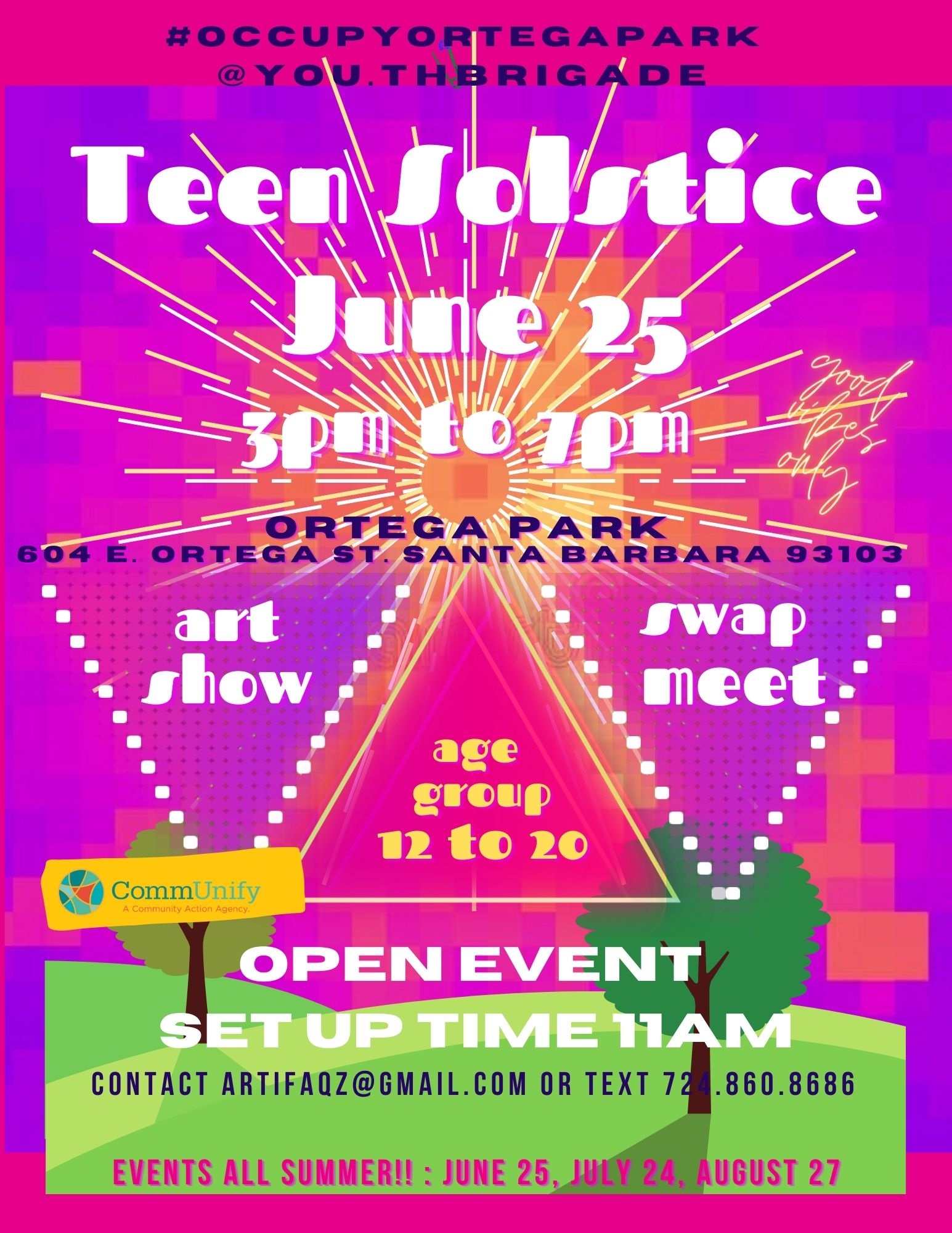 The #OccupyOrtegaPark Youth Brigade group, a for kids by kids grassroots youth group that evolved from the organizations mission to cultivate new leadership invites families and teens for a their first in a series of youthcentric events. Teen Solstice, was derived from the fact that when it comes to activities for teens there are very little options that are create by kids.