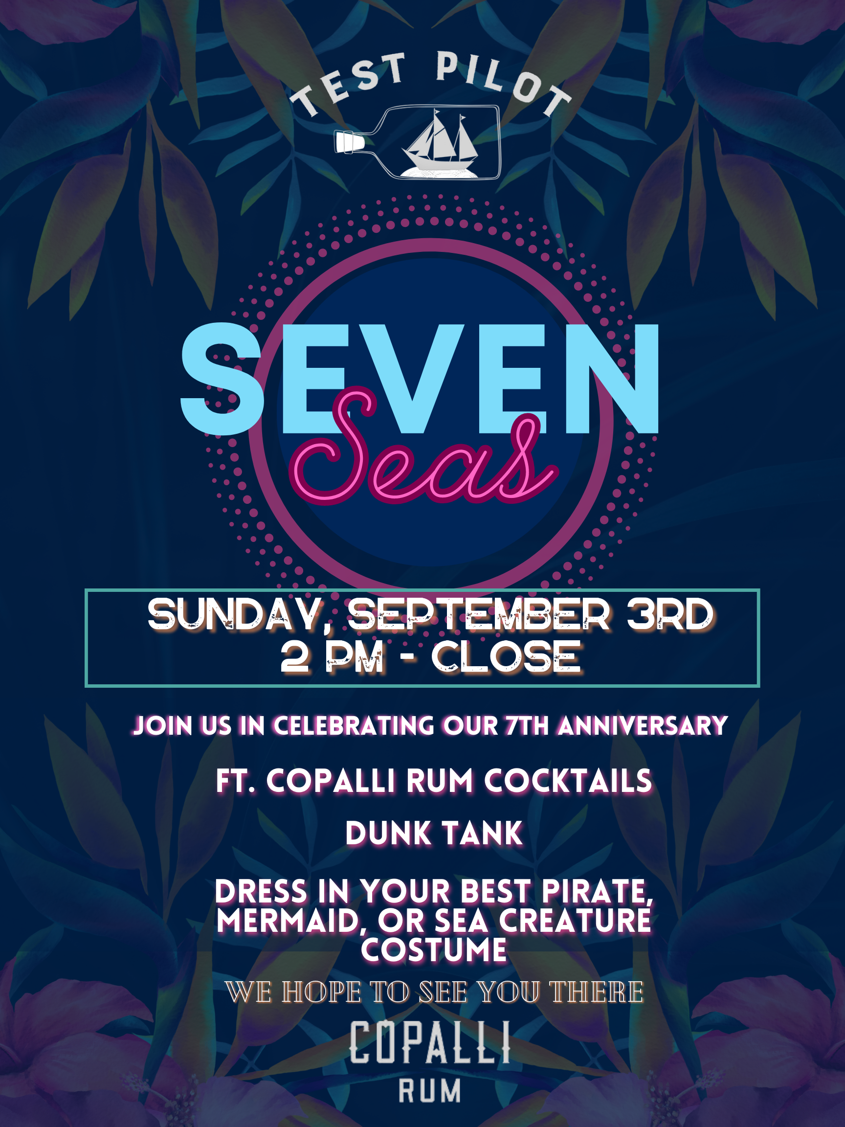 Join Test Pilot and the Good Lion Hospitality team in celebrating Test Pilot’s 7th Anniversary with a Seven Seas party!