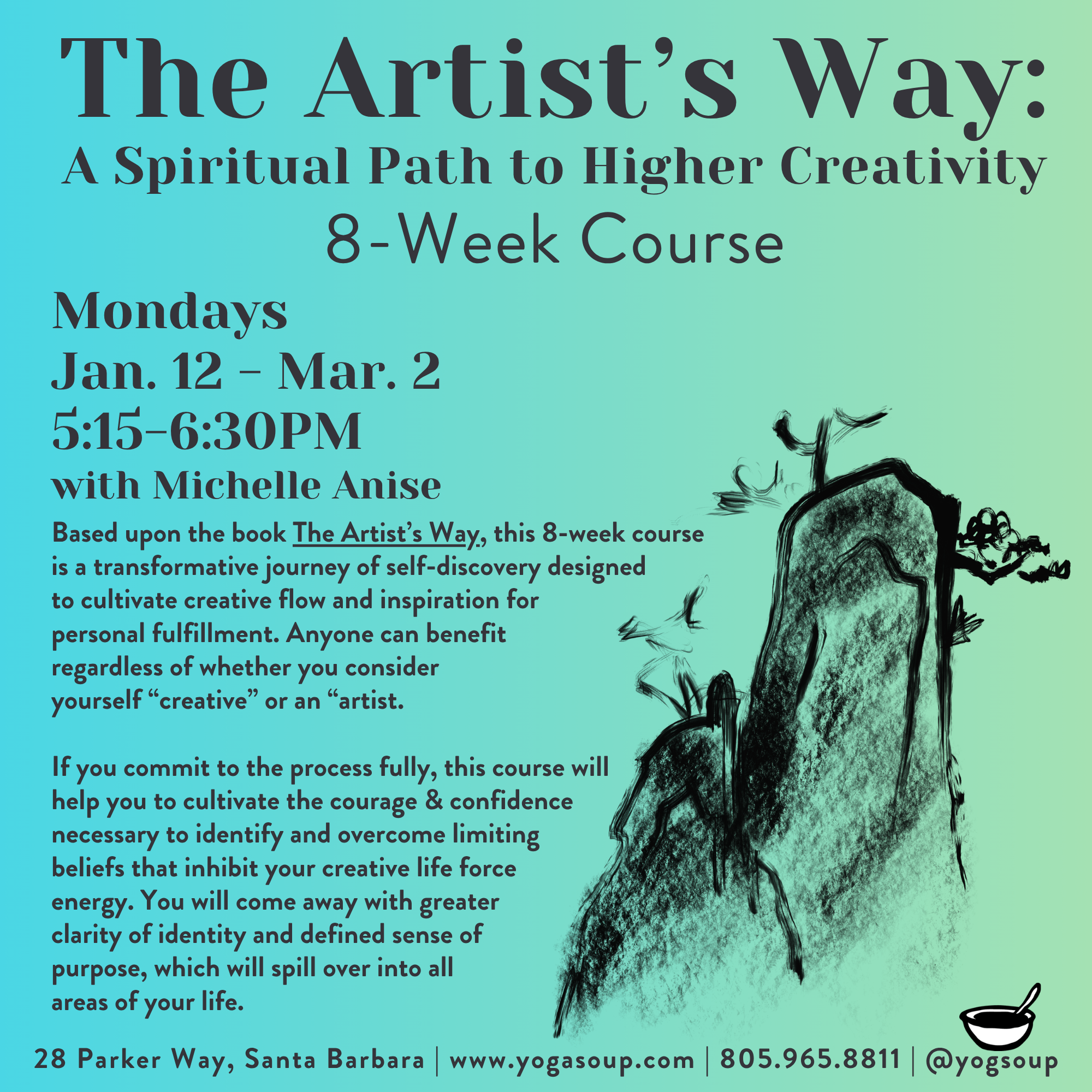 $280 if registering in 2026Based upon the book The Artist’s Way: A Spiritual Path to Higher Creativity, this 8-week course is a transformative journey of self-discovery designed to cultivate creative flow and inspiration for personal fulfillment.