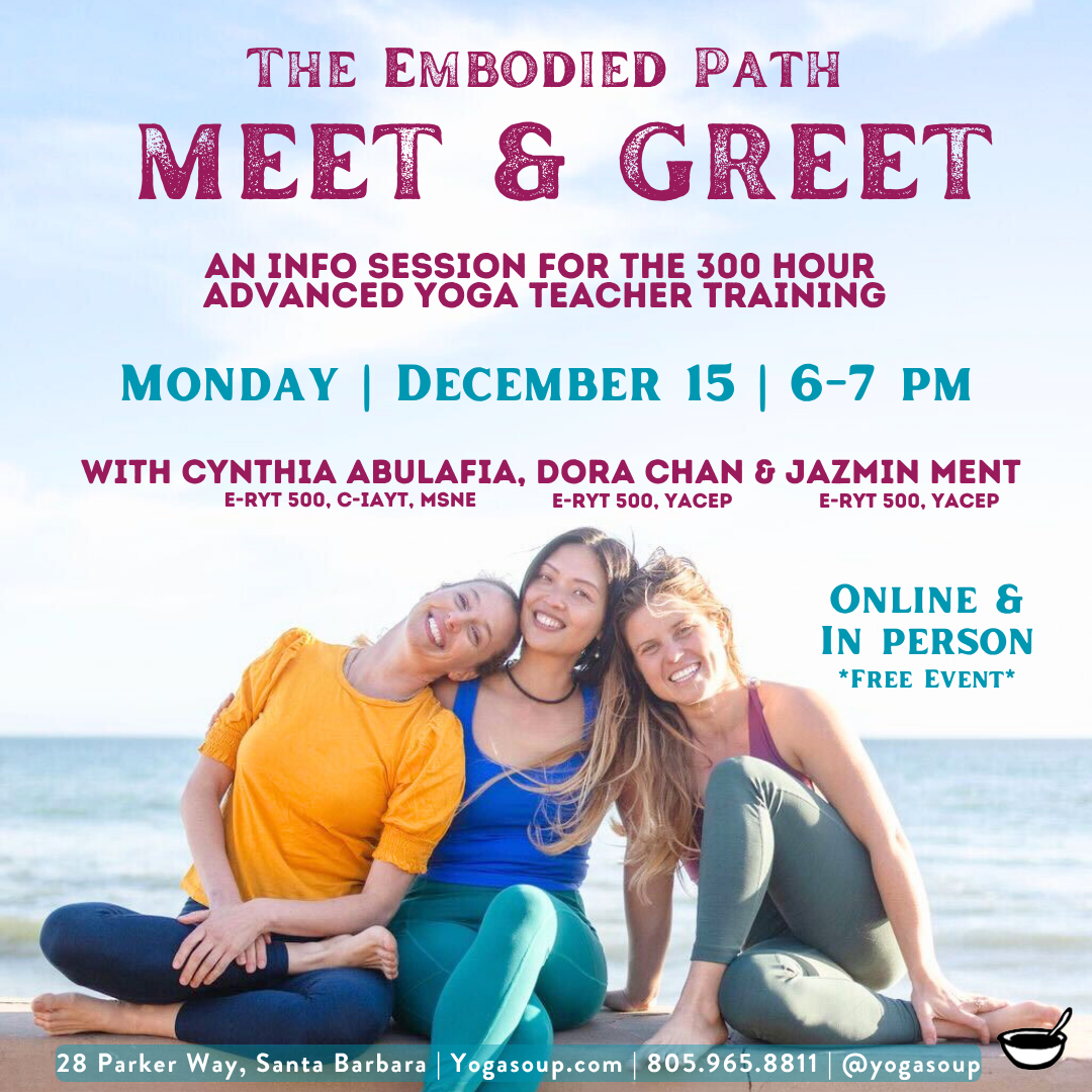 Join us for a heartfelt evening of connection and inspiration as we gather to introduce The Embodied Path 300-Hour Advanced Yoga Teacher Training, beginning January 7th, 2026!
