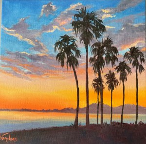 “Playtime at Sunset” by Colleen Janee                       “Santa Barbara Palms” by Vandana Khare