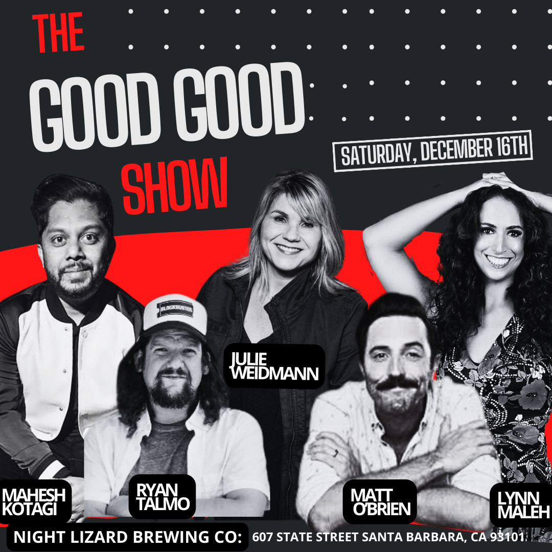 The Good Good Show is Santa Barbara’s longest running monthly stand up comedy show featuring the hottest comics working today that you’ve seen or heard on Comedy Central, CONAN, Jimmy Kimmel, Fox, TruTV, Sirius XM and more.