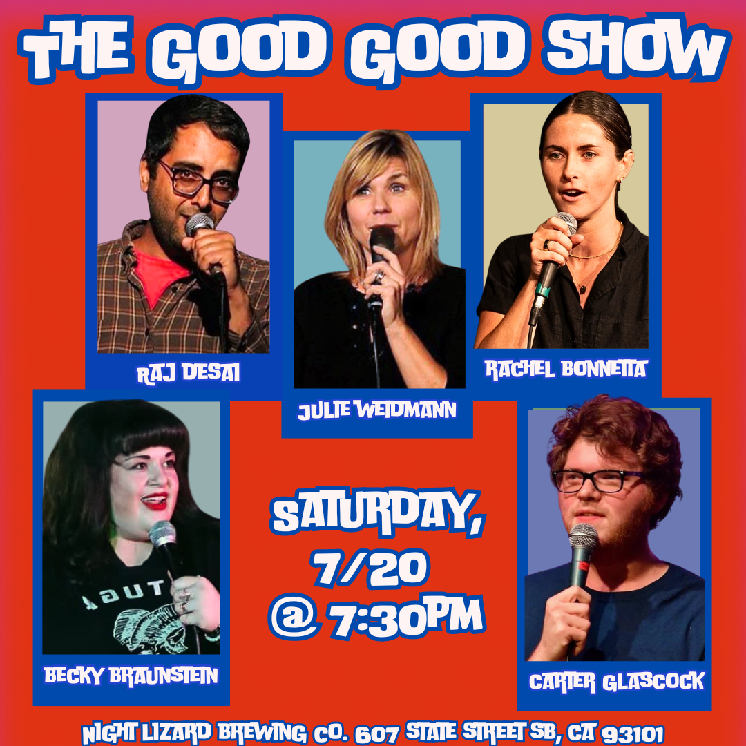 The Good Good Show is a monthly stand up comedy show featuring the hottest comics working today that you’ve seen or heard on Comedy Central, The Late Late Show, Hulu, Netflix, ABC, Last Comic Standing Amazon Prime, SiriusXM and more.