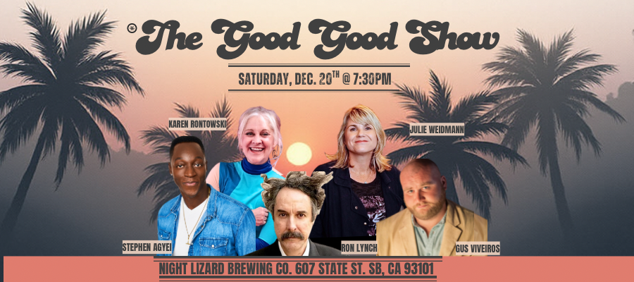 The Good Good Show is a Santa Barbara’s longest running monthly stand up comedy show featuring the hottest comedians working today that you’ve seen or heard on Comedy Central, The Late Show with David Letterman, Hulu, Netflix, Comics Unleashed, Bob’s Burgers, Adventuretime, Jimmy Kimmel, Sirius XM and more.