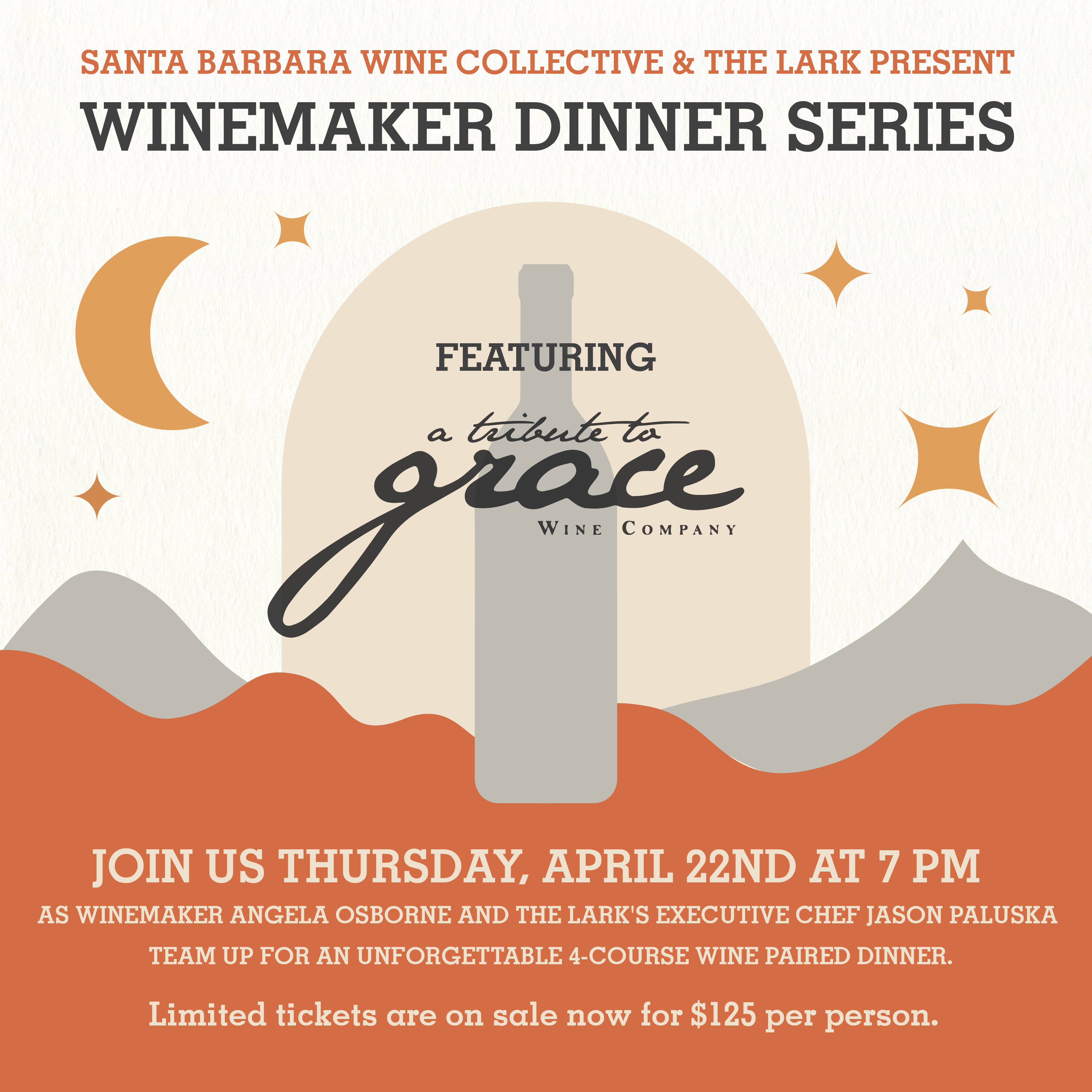 Join us on the gorgeous patio of Santa Barbara Wine Collective as we celebrate the bounty of the Central Coast this Earth Day with a 4-course paired dinner event featuring Angela Osborne. Angela is the owner and winemaker at A Tribute to Grace Wine Company and will be on hand to offer insight into her techniques, values, and love of our region.
