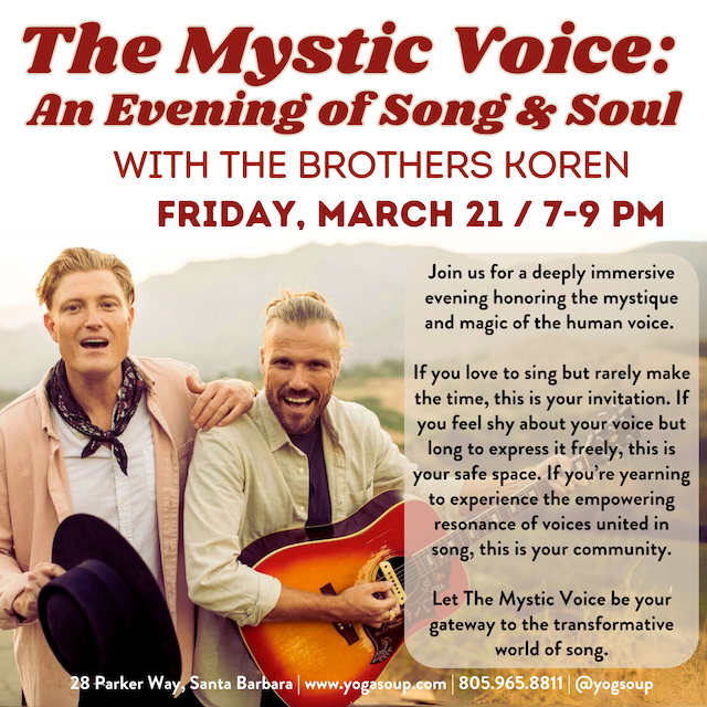 Join the Brothers Koren for a deeply immersive evening honoring the mystique and magic of the human voice. We will come together to experience the profound power of singing in community—an ancient practice that has brought people together in joy, healing, and connection for generations.