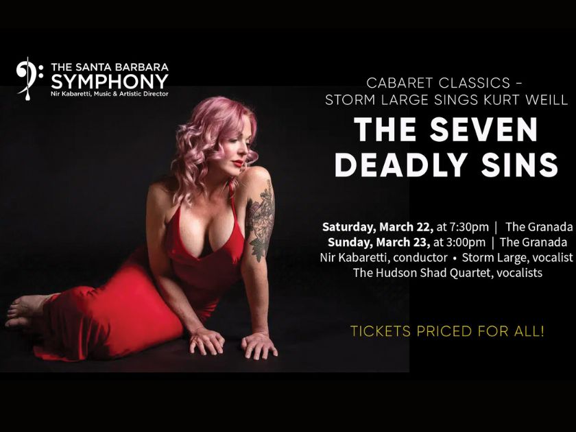 The sensational and sultry Storm Large will get the pulse-racing with her unique take on Kurt Weill’s seductive The Seven Deadly Sins. “A punk goddess,” declares Playboy. “An intoxicating cocktail of power and vulnerability,” raves the Times of London. “With the bawdiness and charisma of a young Bette Midler, she is destined to be one of the most electrifying performers of her time,” says Portland’s PDX Magazine, “You’re going to be wowed, maybe choking back tears. Nobody should be able to sing like that…” This concert draws you into the smokey, sensual world of cabaret, with works by Jacques Ibert, William Grant Still, and Jessie Montgomery.