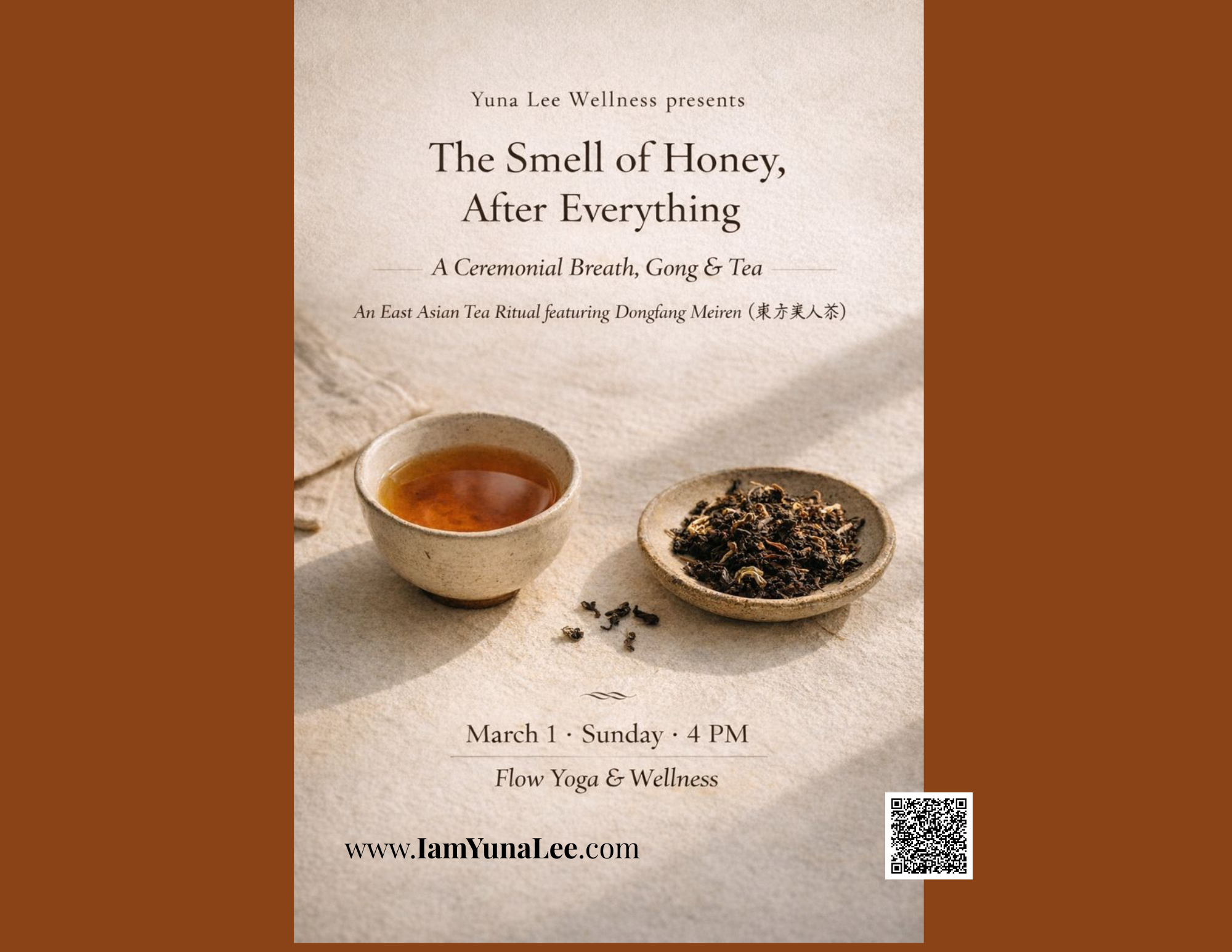 We begin with an East Asian tea ritual featuring Dongfang Meiren, a rare Taiwanese oolong grown in clean mountain environments and carefully hand-picked, prized for its naturally honeyed aroma and depth of flavor as well as its smooth, calming energy and lingering warmth.