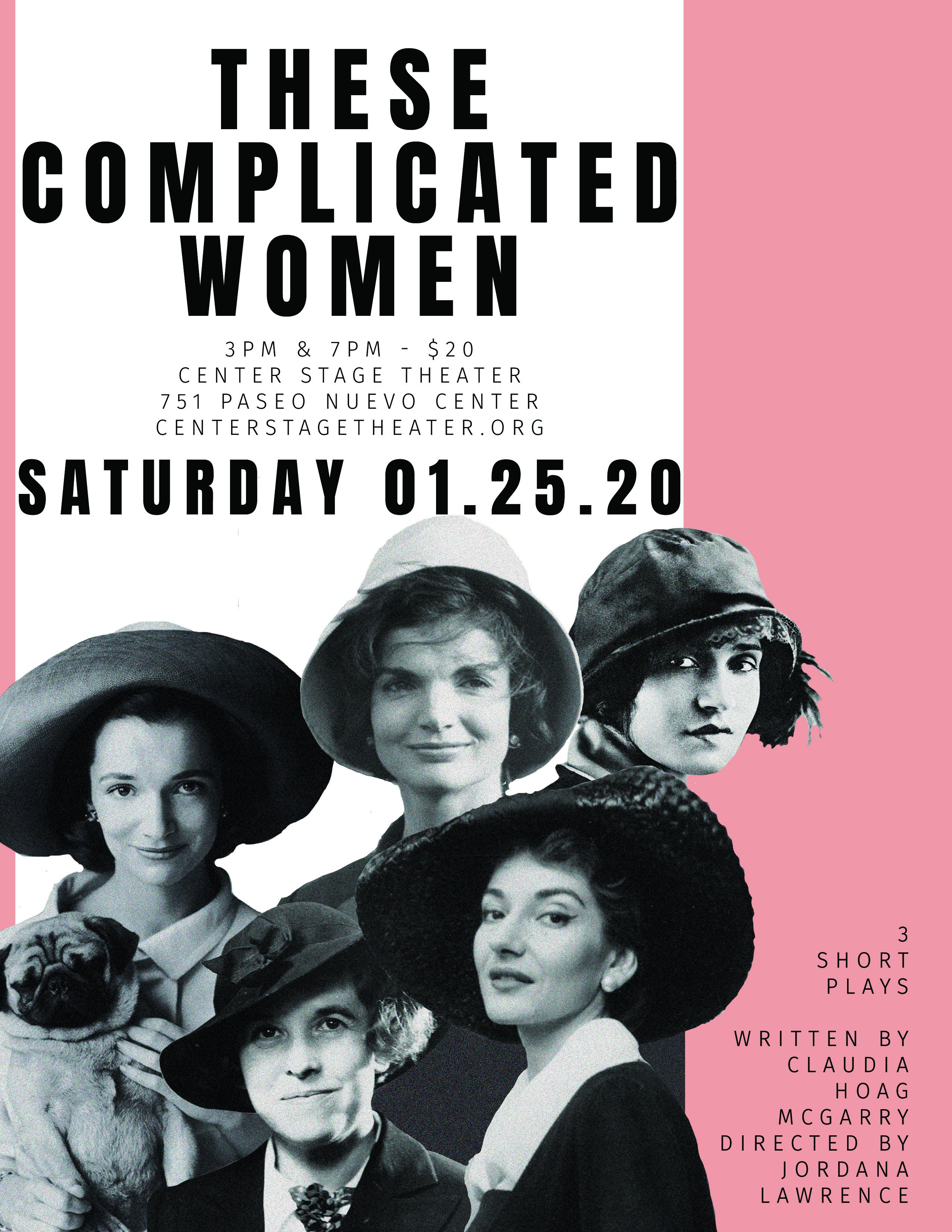 These Complicated Women considers the deeply conflicted, passionate, and fascinating lives of some famous and talented women from the last century: Hallie is about Hallie Flanagan, a true story of the ambitious Federal Theater Director during the WPA who was beset by personal tragedy, grilled by the House of Un American Activities Committee, and became the first female Guggenheim scholar. Modotti, again a tale inspired by true events, is the story of Tina Modotti, an Italian beauty who had emigrated to the U.S, then leaves for Mexico in the early 1920s to learn photography with her lover Edward Weston before becoming a Communist party leader alongside Frida Kahlo and Diego Rivera. Soon she finds herself embroiled in the assassination investigation of another lover, and is arrested before being banished from the country. Our third story, Jackie, Maria and Lee, is about Jackie Kennedy Onassis, Maria Callas, and Lee Radziwill and is a fictional drama partly based on true events that takes place in heaven where the three deceased women confront one another about anger, hurt, and misunderstandings from their time on earth. This exchange is interrupted by Aristotle Onassis, who comes onto the scene from where he sits, stuck in Purgatory.