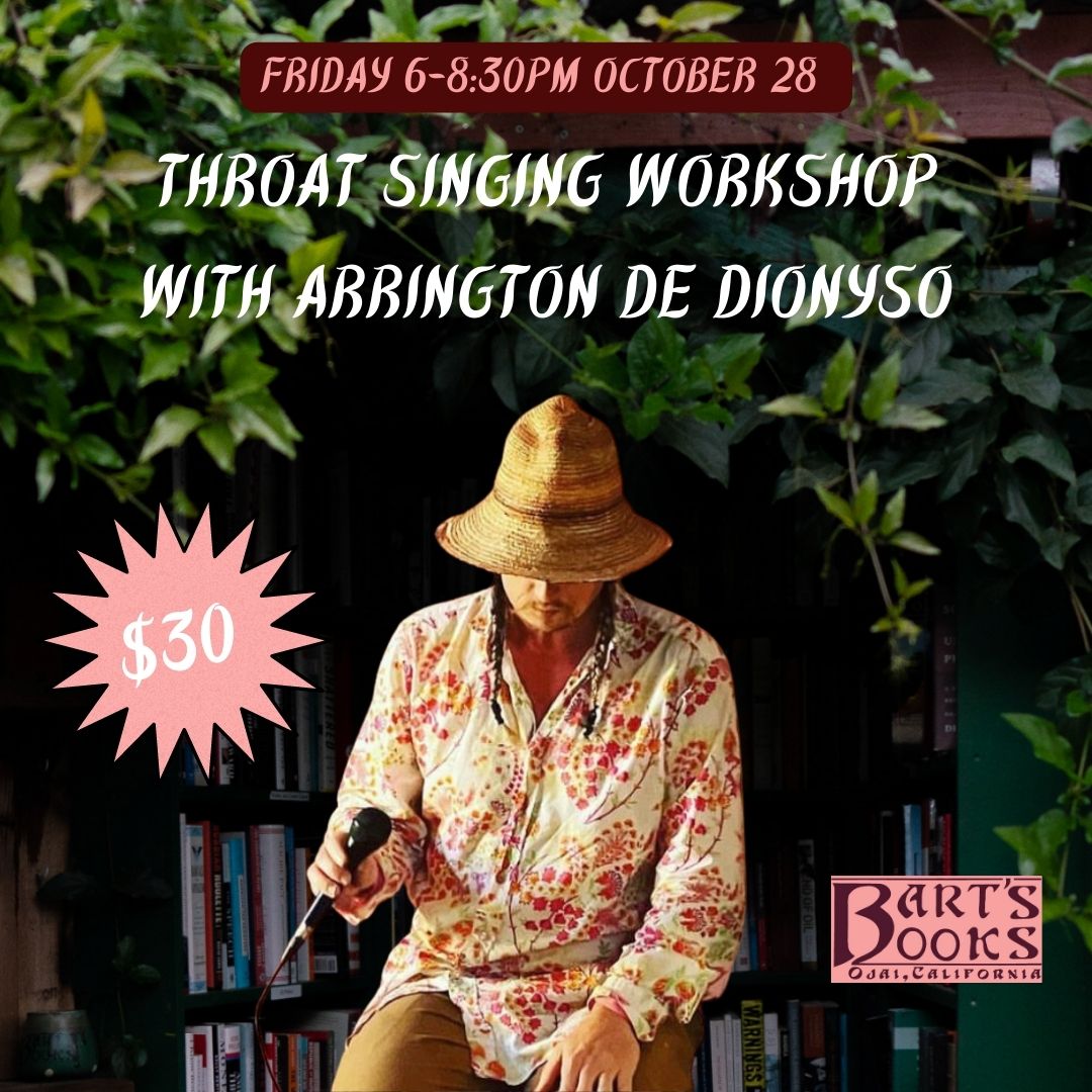 An intimate workshop for twelve participants introducing the art and techniques of Tuvan throat singing led by Arrington de Dionyso.