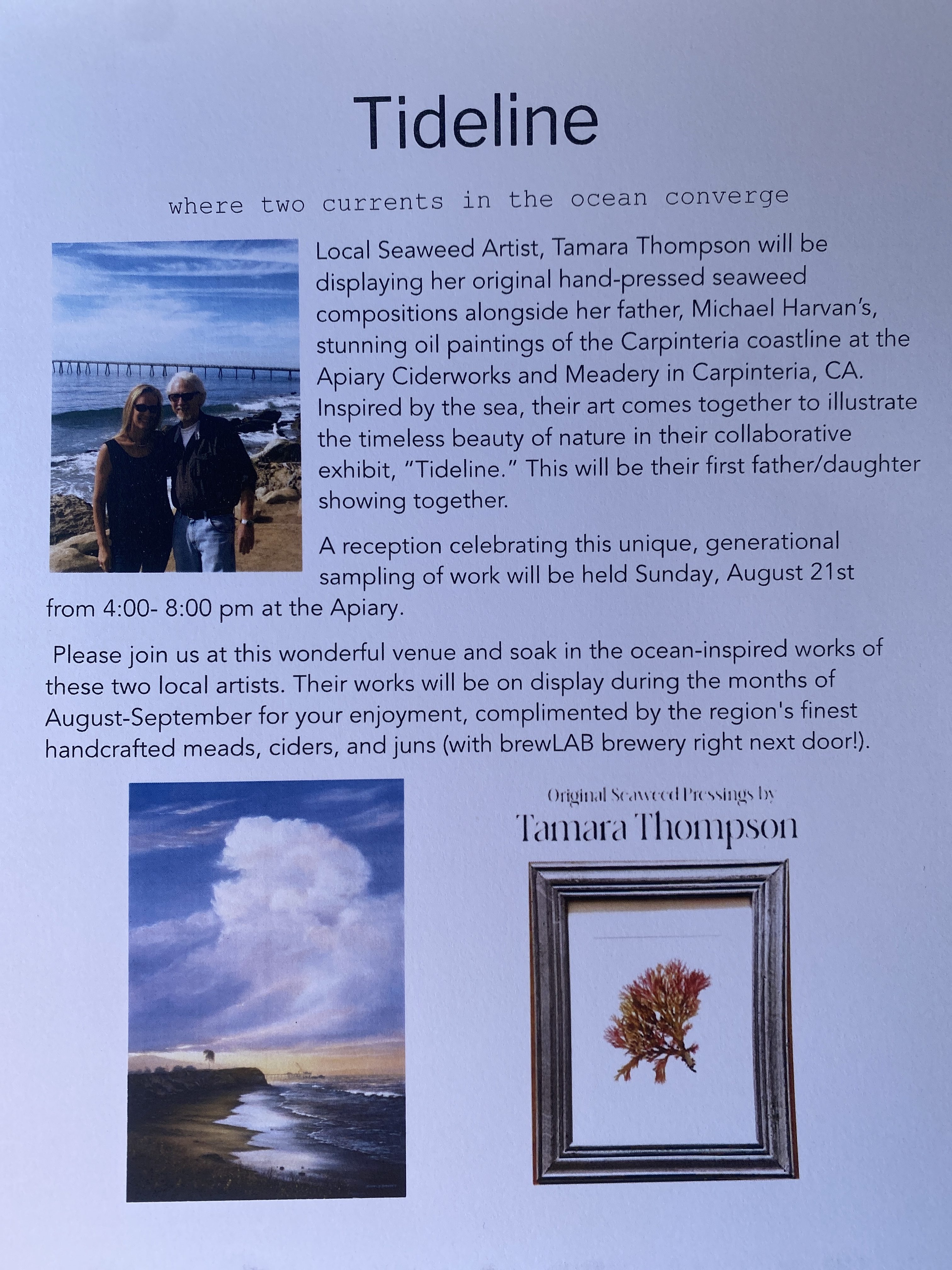 Please join local artists Tamara Thompson and father Michael Harvan for a free reception of their art show at Apiary Ciderworks and Meadery in Carpinteria!