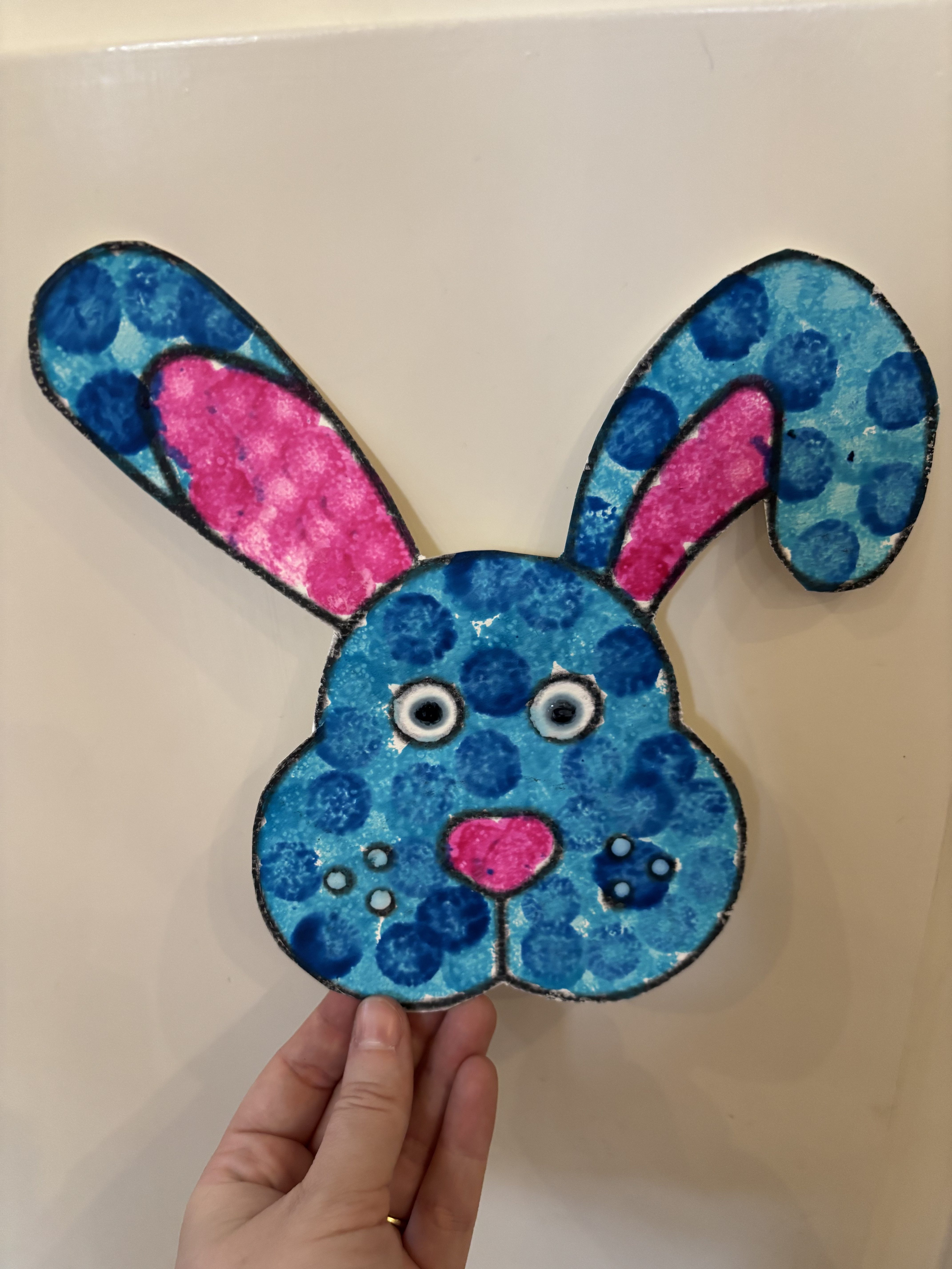 Working with their grown up and Dr. Devon Christman (Ph.D. in Childhood Education) young crafters will practice making repetitive dots to color in an animal face with paint.