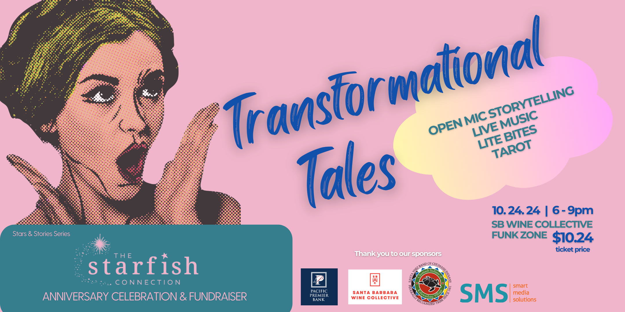 This October 2024, marks the 2 year anniversary of The Starfish Connection nonprofit in Santa Barbara County! The Starfish Connection is dedicated to providing HOPE for our community through Crisis Funding and Community Storytelling. Transformational Tales will kick off our Stars and Stories series providing opportunities for our wonderful community to gather, connect, and share stories!