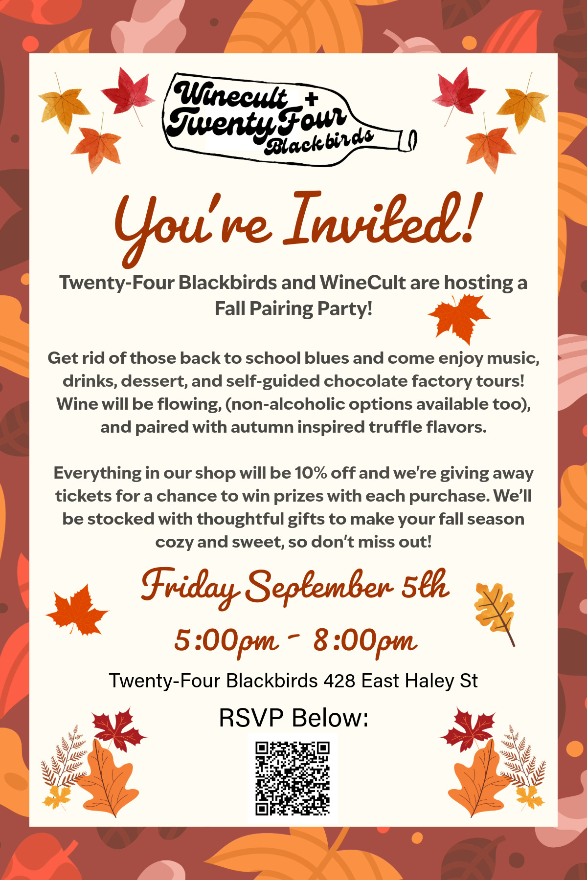 Twenty-Four Blackbirds and WineCult are hosting a Fall Pairing Party!