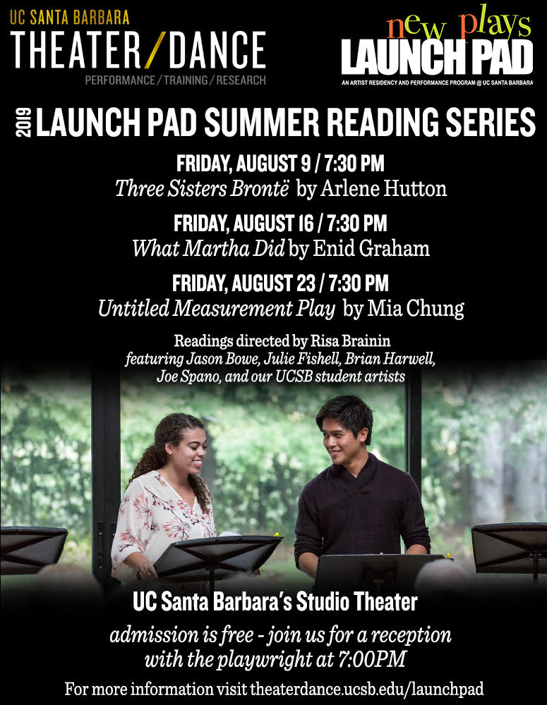 UC Santa Barbara’s LAUNCH PAD presents Untitled Measurement Play by playwright-in-residence Mia Chung, 2019 recipient of the Helen Merrill Award for Playwriting. Directed by Risa Brainin and featuring UCSB theater students and visiting guest artists, this new play will have just been completed after a week of revision and exploration and will provide an intimate viewing experience of this innovative program within UCSB’s Theater/Dance Department.