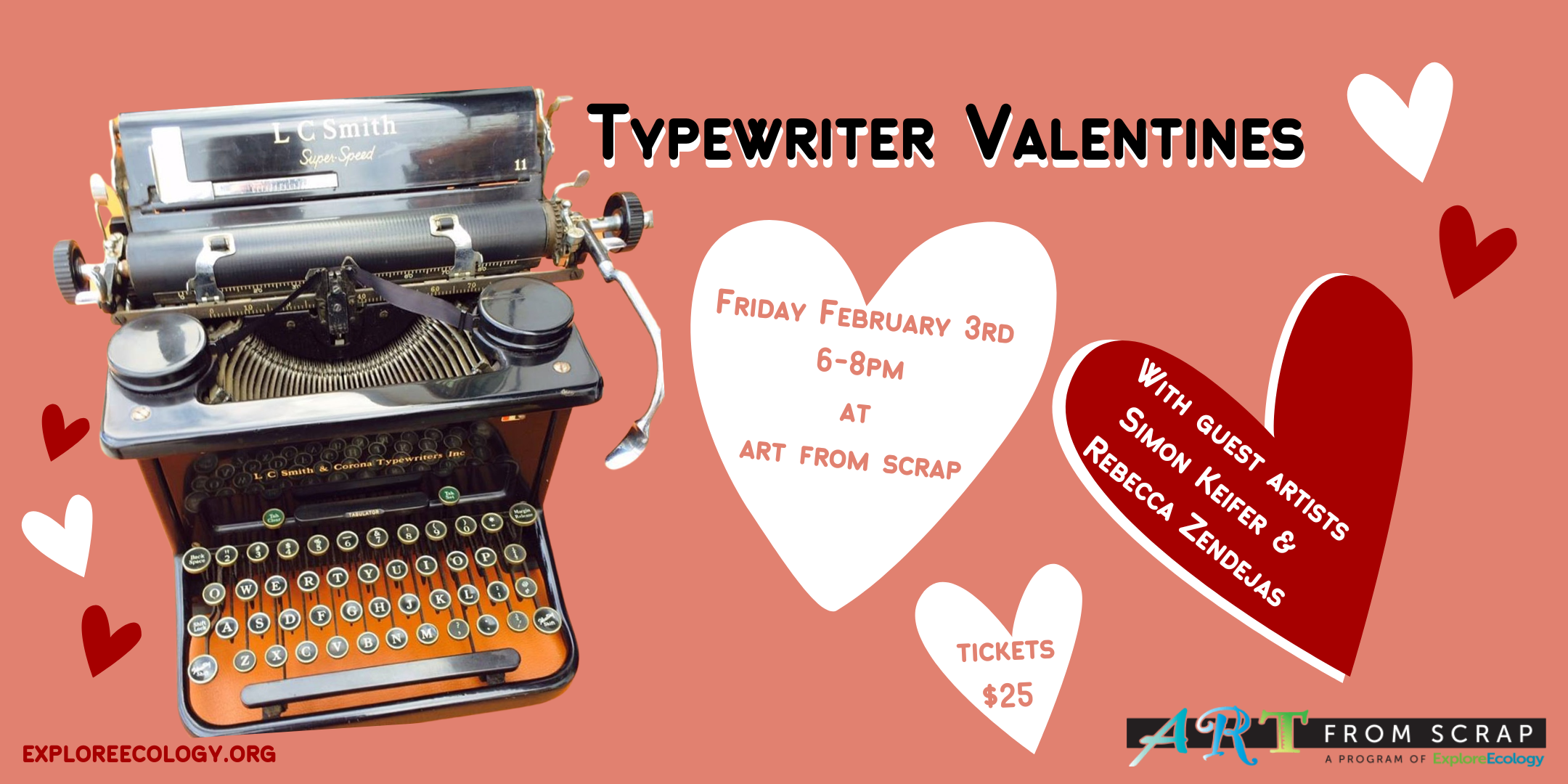 Show your Valentine you care with a handmade card created at Art From Scrap’s Valentines making workshop on Friday, February 3rd from 6:00 pm to 8:00 pm. Create handmade cards and postcards in this fun workshop for adults with Simon Keifer and Rebecca Zendejas.