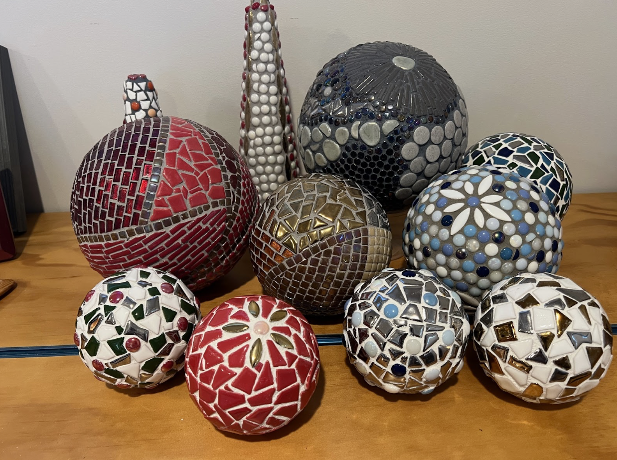 Learn how to make your very own gorgeous decorative mosaic ball to keep or give away in this fun 2.5 hour workshop! You will learn how to choose, cut and place your tiles, bond tiles to a base (substrate), and grout* your unique mosaic. Once you master these techniques, you will not only have a shiny and delightful decorative piece of art, you will have skills to repeat the process at home! This workshop is suitable for beginners as well as those with experience.