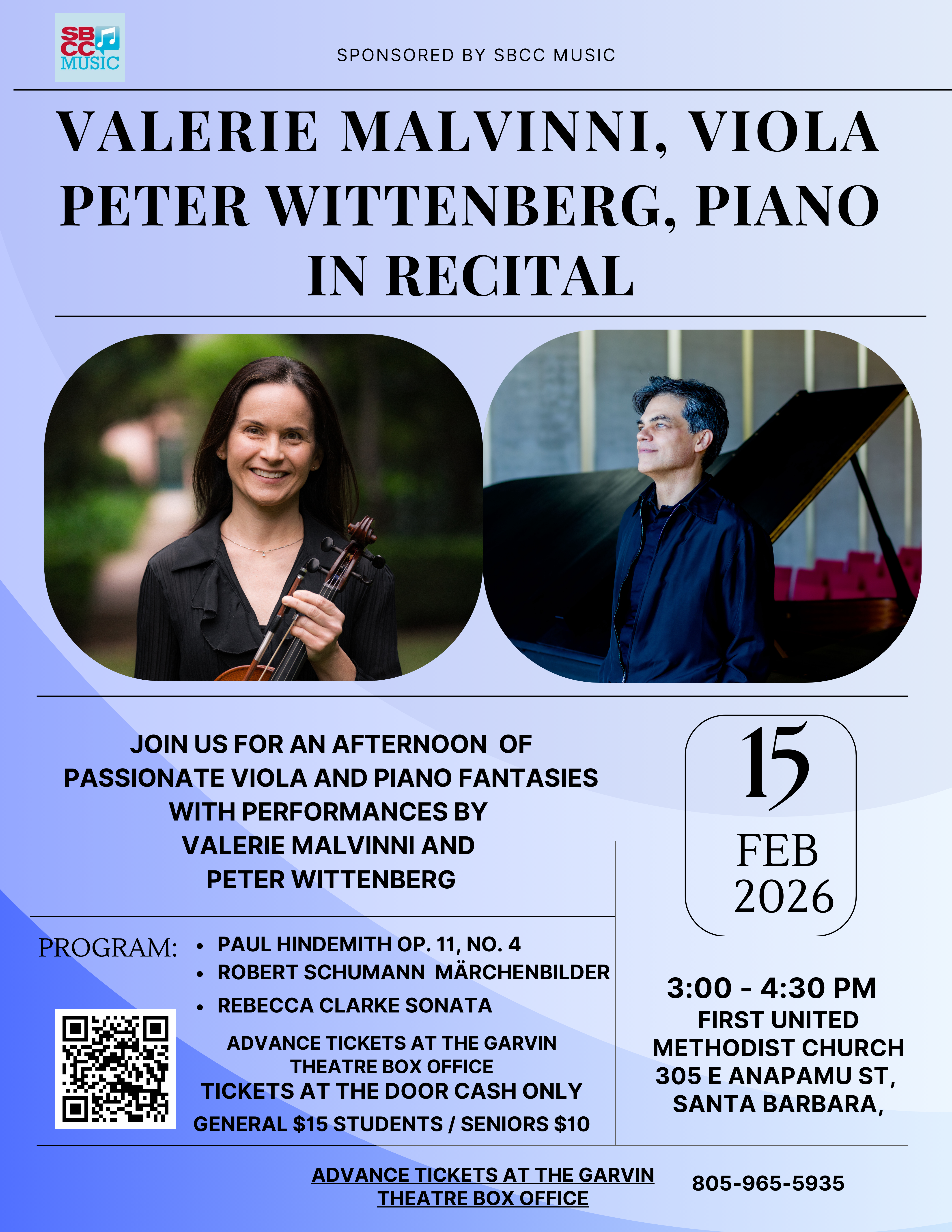 Valerie Malvinni, Viola and Peter Wittenberg, Piano in Free Recital!