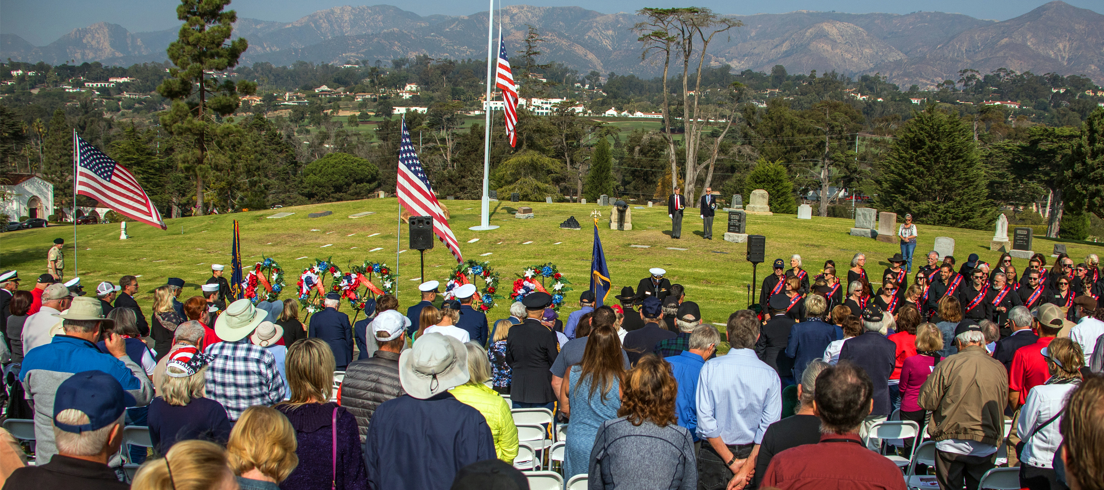 We are pleased be hosting the Santa Barbara community Veterans Day Ceremony on Tuesday, November 11th at 11:00 a.m. Attendees are encouraged to arrive early; the ceremony begins at 11:00 AM sharp and concludes with a spectacular flyover by The Condor Squadron. The ceremony will take place at the Santa Barbara Cemetery, 901 Channel Drive. Known as one of the city’s most beautiful outdoor locations, the venue’s driveway will be decorated with dozens of American flags. The ceremony will take place near the main flagpole, with seating available for up to 500, with additional standing room. THIS IS A FREE EVENT.