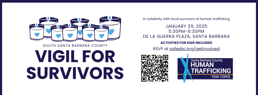 Please join partners from the Santa Barbara County Human Trafficking Task Force on Wednesday, January 29 at 5:30 PM for an interfaith vigil to commemorate local survivors of trafficking in Santa Barbara County.