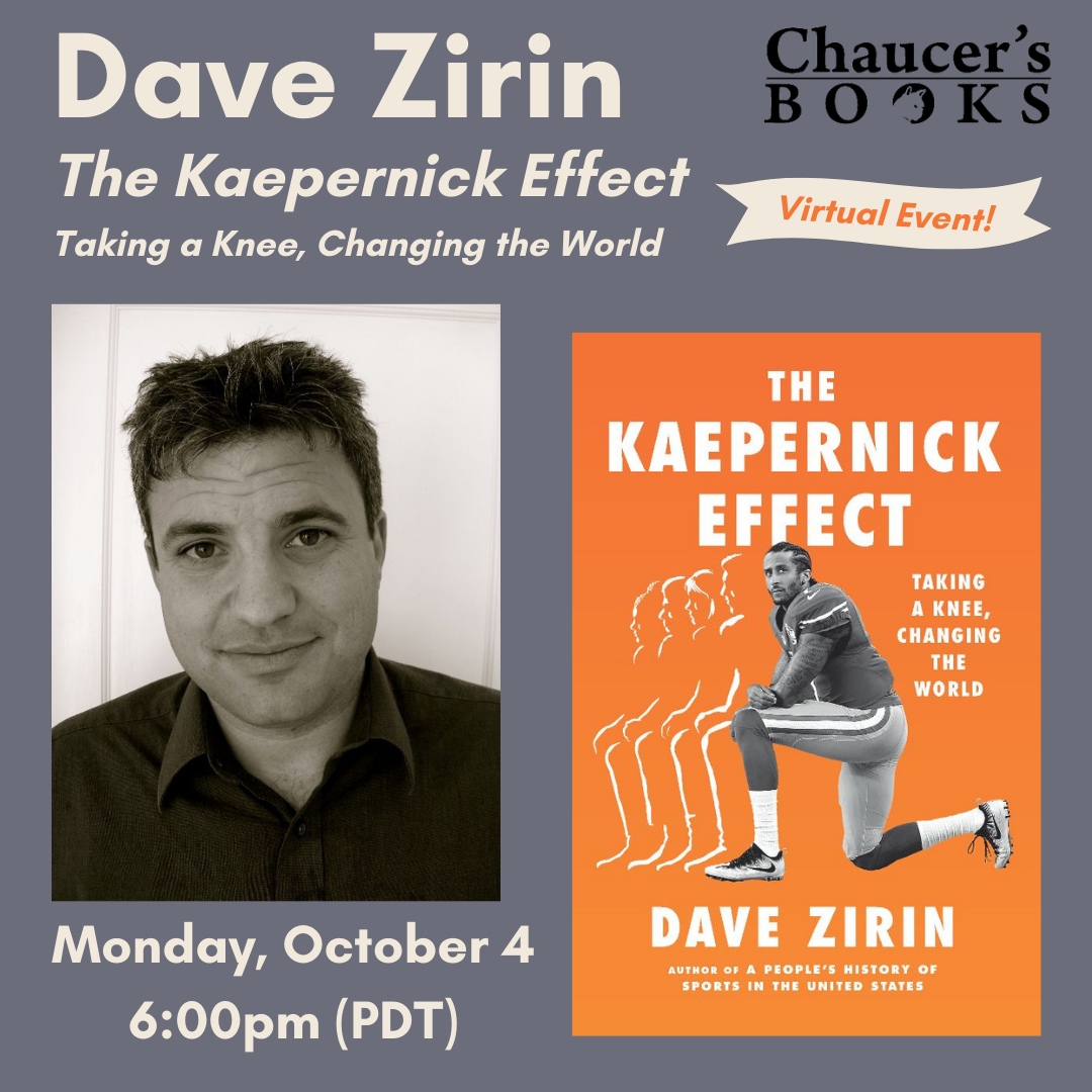 For event information, please click here: https://www.chaucersbooks.com/event/vitual-event-dave-zirin-kaepernick-effect