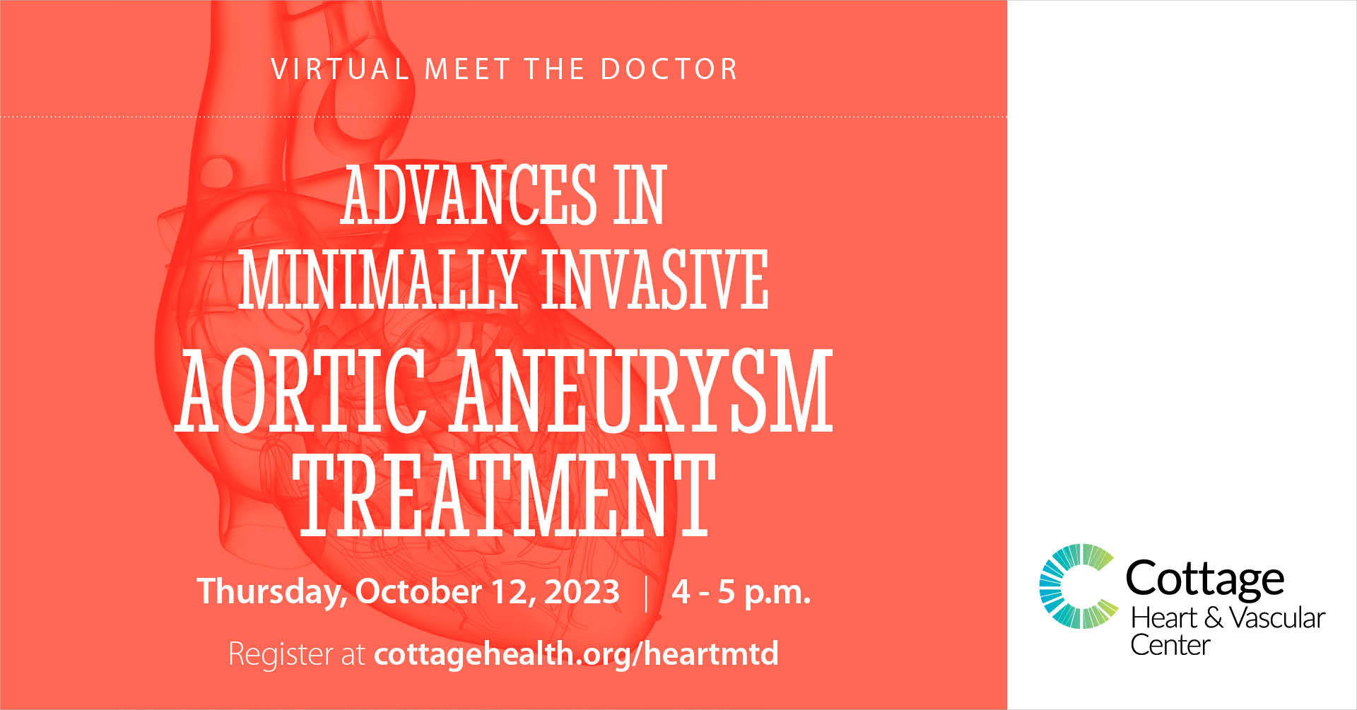 The Cottage Heart and Vascular Center will present a FREE Virtual Meet the Doctor event with Dr. Kevin M. Casey on Advances in Minimally Invasive Aortic Aneurysm Treatment.