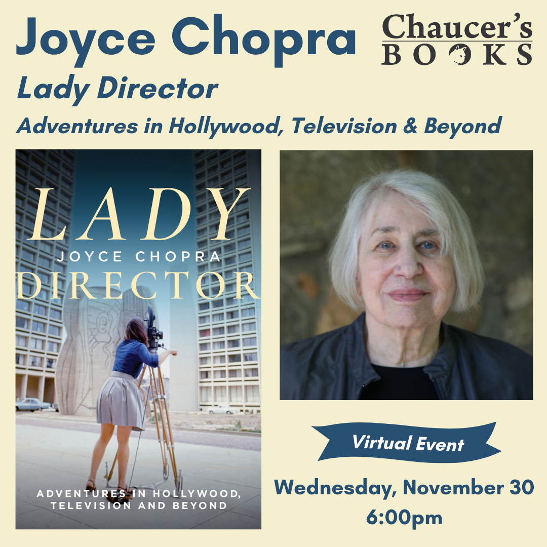 Chaucer’s Books will host a virtual discussion with acclaimed filmmaker and author Joyce Chopra, on Wednesday, November 30 at 6 p.m.