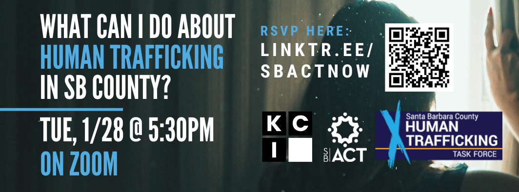 We can end trafficking in Santa Barbara County IF we stand together. Join representatives from the SB County Human Trafficking Task Force on Zoom on Tuesday, Jan 28 from 5:30pm-7pm for a training on how YOU can take action to identify and respond to human trafficking locally.