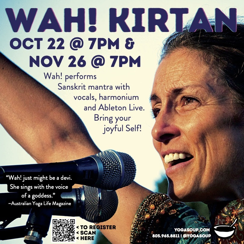 Wah! is a legend in the yoga world. If you have been to a yoga class in the last 10 years, you have undoubtedly heard her music. She has spent over 25 years training yoga teachers and providing music for yoga and meditation. She has lectured at Princeton University, Loyola Marymount University, performed with Deepak Chopra, Wayne Dyer and taught at Omega Institute and 1440 Multiversity. She’s been featured in Ladies Home Journal, Mantra Yoga & Health Magazine and Yoga International Magazine.