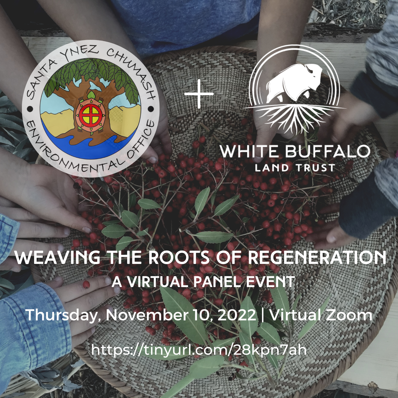 Join us for a virtual panel discussion about regenerative approaches to growing wellness for human and ecosystem health. Led by both the Santa Ynez Chumash Environmental Office (SYCEO) and White Buffalo Land Trust, explore how together we can create reciprocity among soil, water, foods, plants and our communities.
