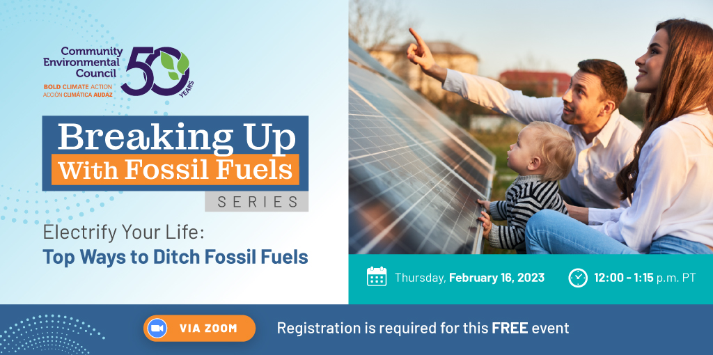 Join the Community Environmental Council’s webinar to learn how one family kicked their daily fossil fuel habit––and how you and your family can too. We’ll cover the most impactful changes you can make today to create all-electric homes, commutes, and communities that are safer and healthier.