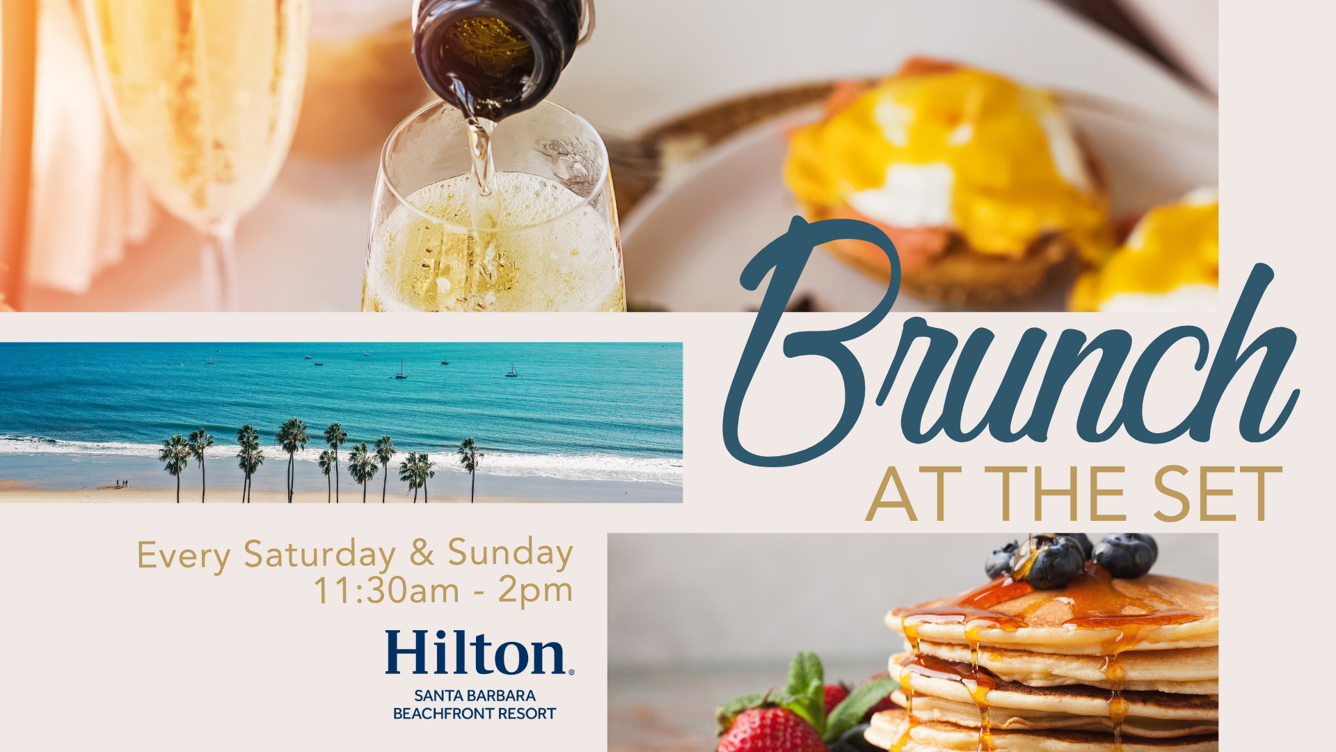 Every Saturday & Sunday | 11:30 AM – 2:00 PM Spend your weekends by the beach with a relaxed and flavorful brunch at The Set, located inside the Hilton Santa Barbara Beachfront Resort.