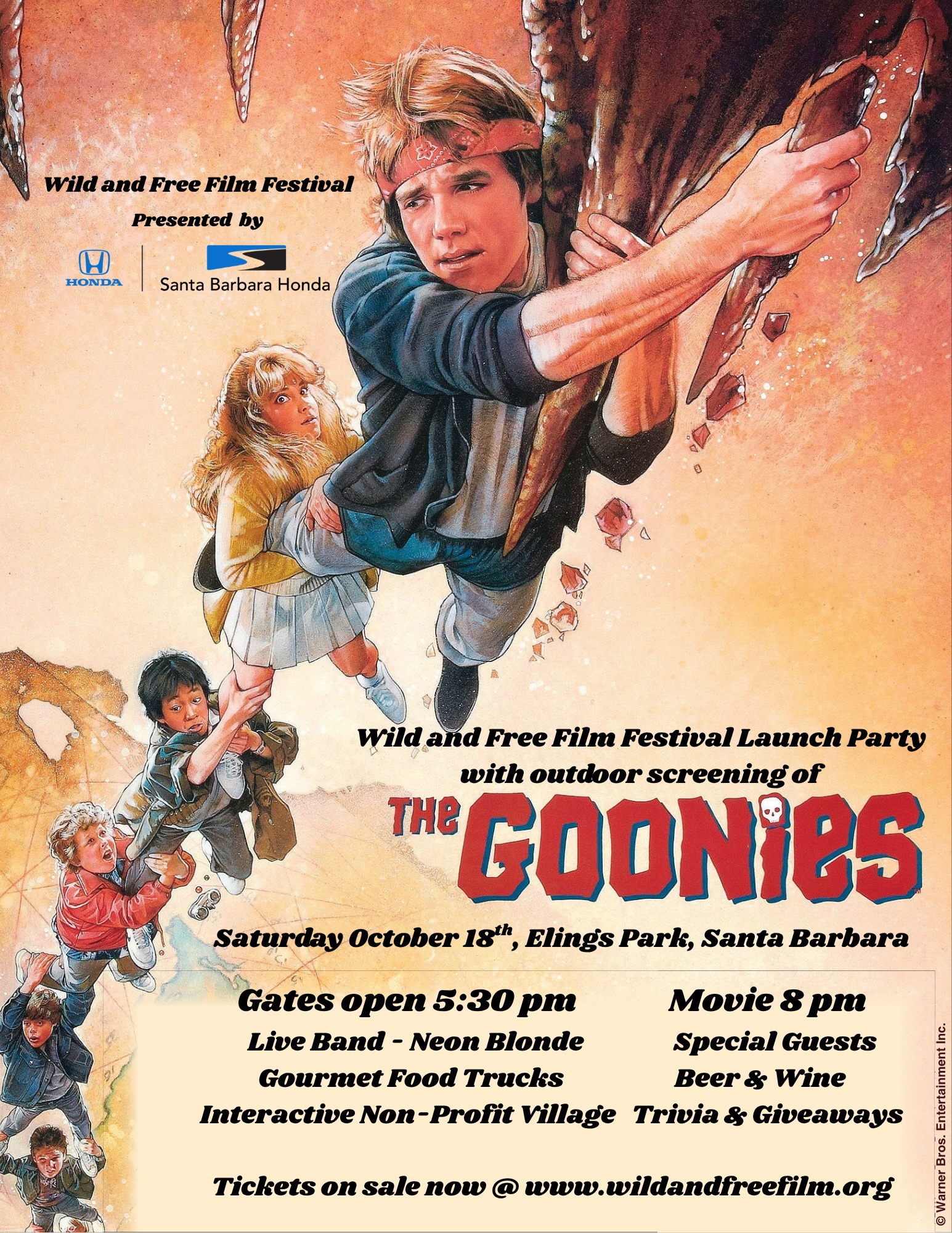 This first-of-its-kind event will feature live music, food trucks, local beer and wine, an interactive nonprofit village, and a special guest conversation, culminating in a screening of The Goonies on a massive outdoor screen under the stars.