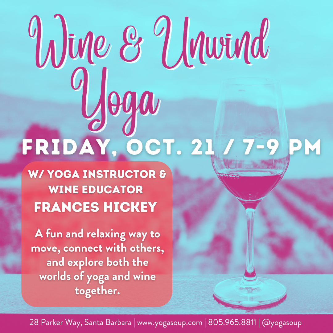 Wine and unWind yoga events are fun and relaxing ways to move, connect with others, and explore both the worlds of yoga and wine together.