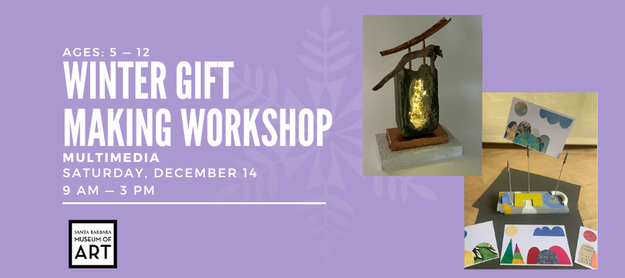 Children ages 5-12 gain inspiration from works of art in the Museum’s collection to draw, paint, print, collage, and sculpt artful gifts to share with friends and family.