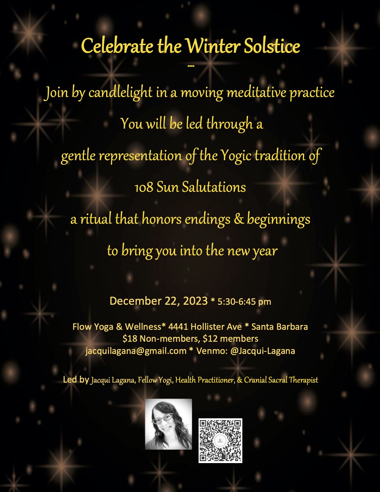 Join by candlelight in a moving meditative practice. You will be led through a gentle representation of the Yogic tradition of 108 Sun Salutations, a ritual that honors endings and beginnings to bring you into the new year.
