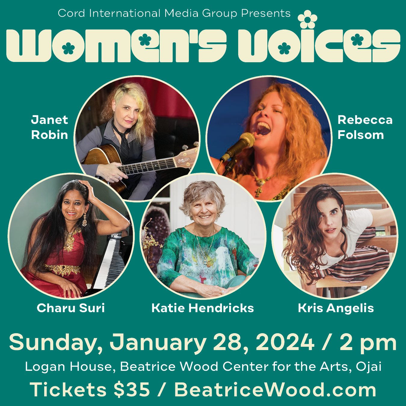 Come for the Concert and drop deeply into the magic and peace of the Beatrice Wood Center for the Arts, enjoying the exquisite musicianship, vocal harmonies, writing, and extraordinary talent of our female artists in the Women’s Voices Concert.