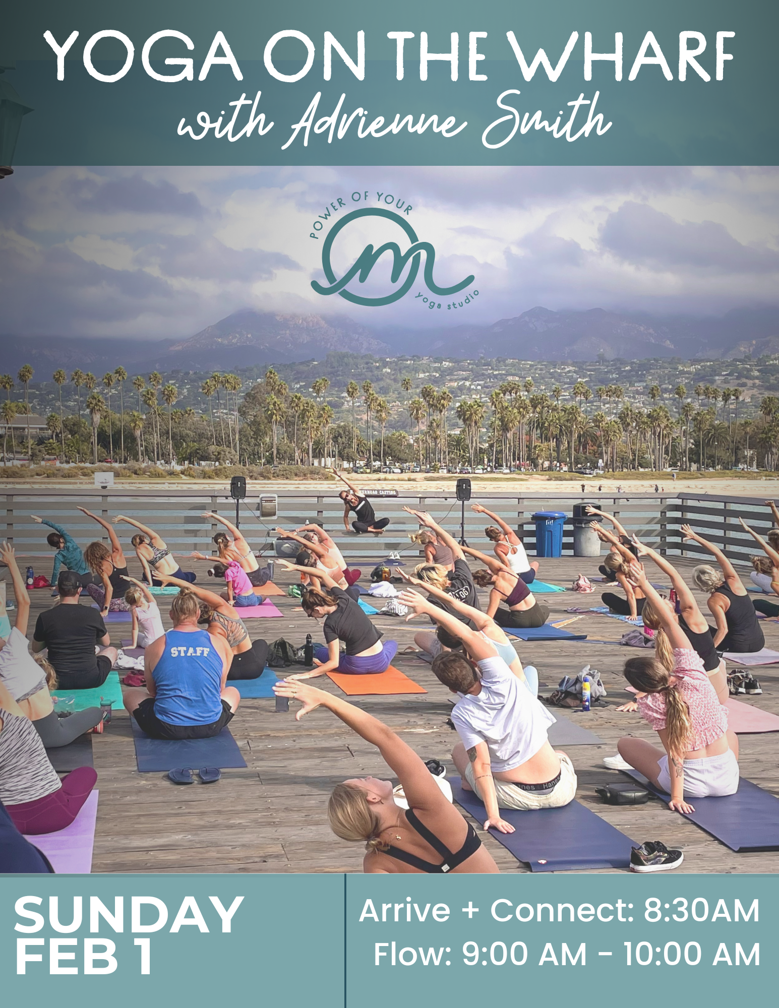 Come join the Power of Your Om community for a relaxing and rejuvenating yoga session right by the ocean at 211 Stearns Wharf. Connect with your breath, stretch your body, and find inner peace while enjoying the beautiful views around you.