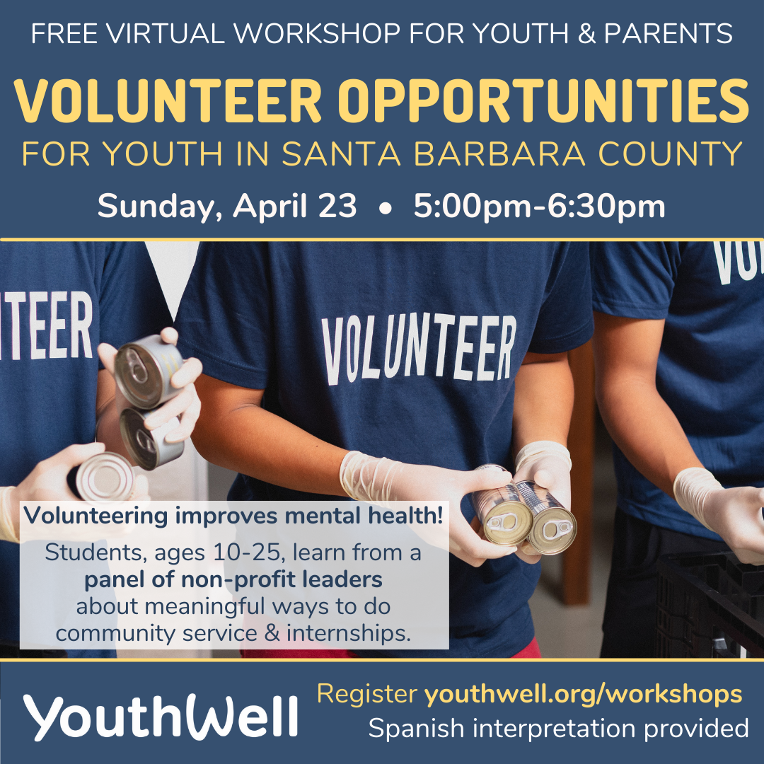 Students (ages 10-25), parents, caregivers, and teachers are invited to learn from our Non-Profit Panel of 20+ SB County organizations about how students can create meaningful ways to volunteer and do community service.