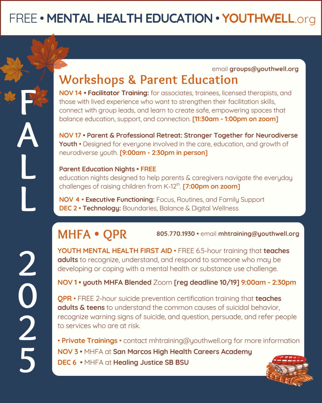 FREE 6.5-hour training that teaches adults to recognize, understand, and respond to someone who may be developing or coping with a mental health or substance use challenge.