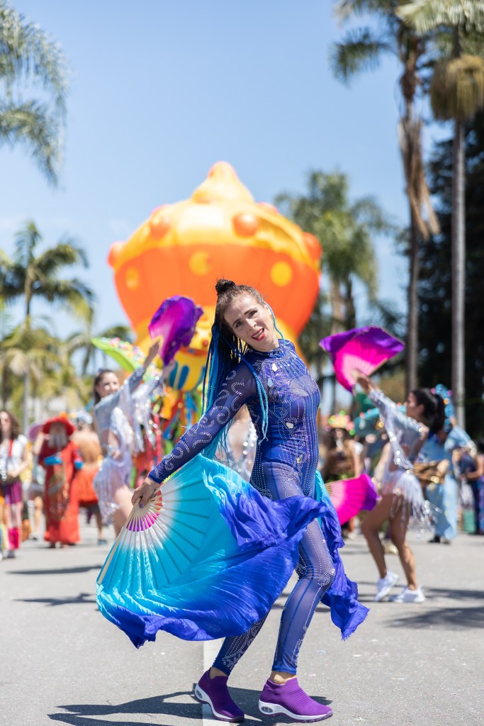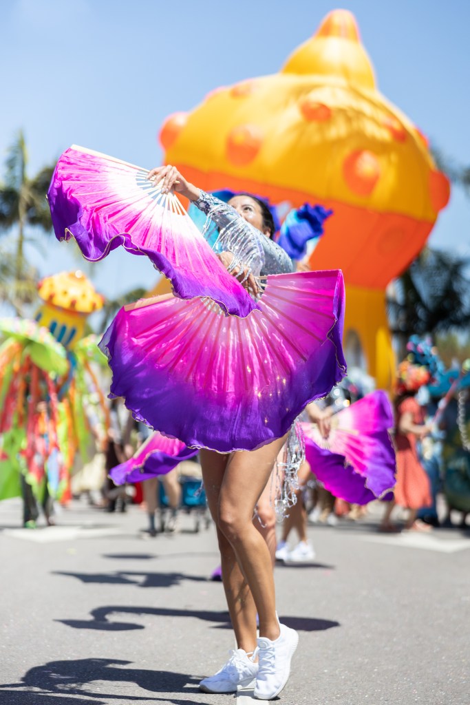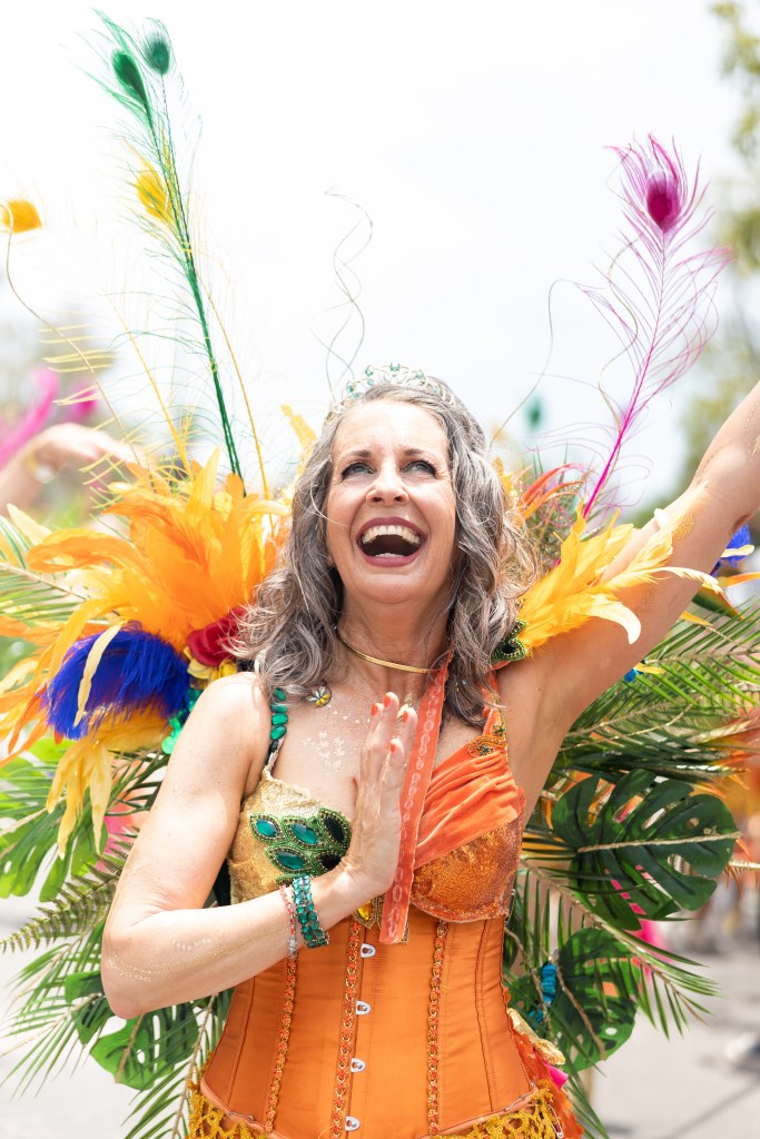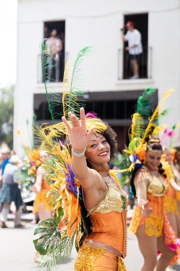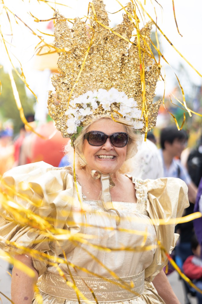 Glimmering dancers in golden costumes adorned with jewels, crowns, and peacock feathers were the rays of sunshine illuminating the way for the stream of floats, roller-skaters, singers, puppets, and more that followed. As the shimmering performers danced to songs like “Mambo No. 5,” they encouraged parade-goers to dance alongside them. It would have been difficult for anyone to stay in a gloomy mood while surrounded by such sparkle.