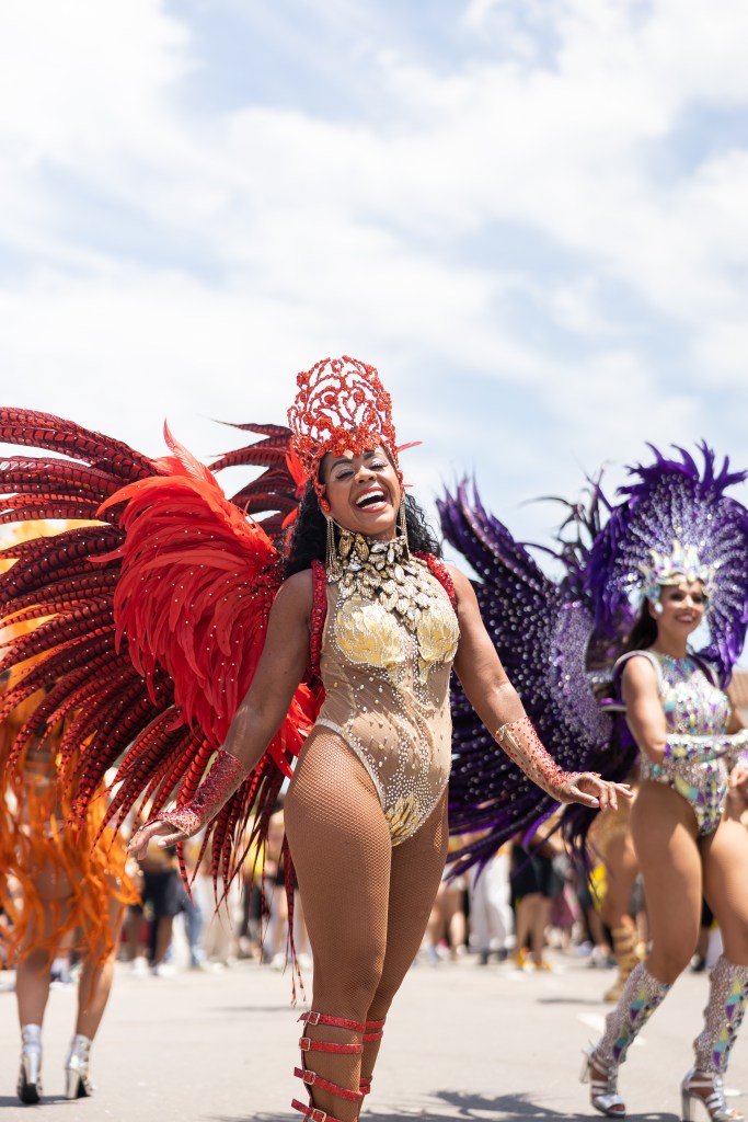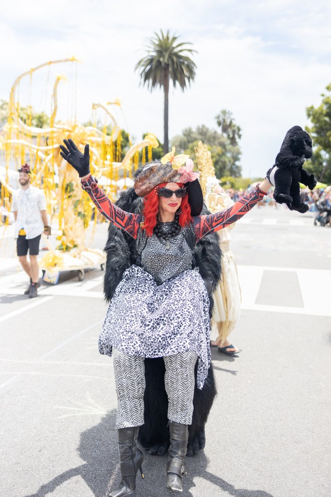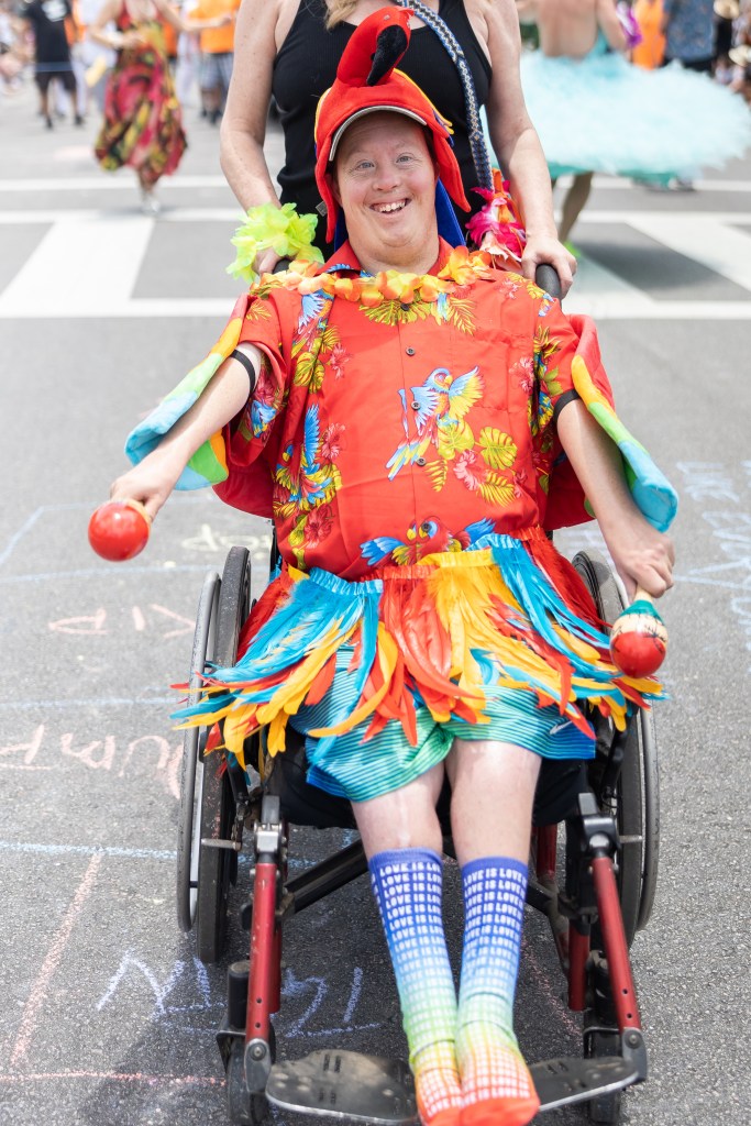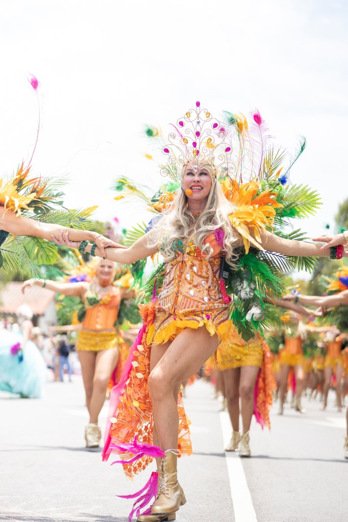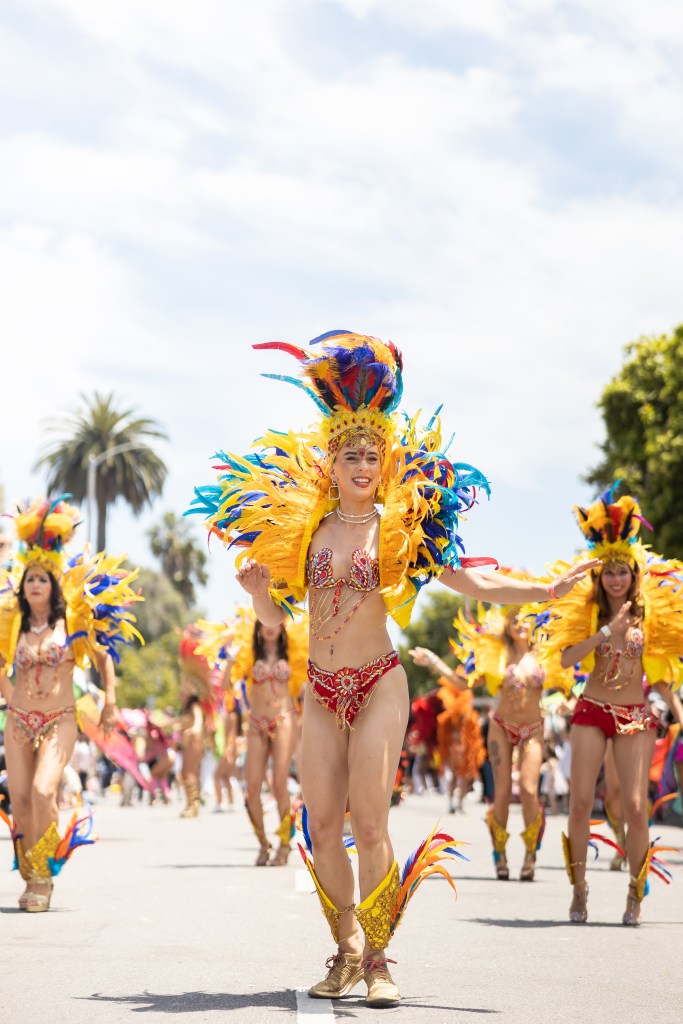 Glimmering dancers in golden costumes adorned with jewels, crowns, and peacock feathers were the rays of sunshine illuminating the way for the stream of floats, roller-skaters, singers, puppets, and more that followed. As the shimmering performers danced to songs like “Mambo No. 5,” they encouraged parade-goers to dance alongside them. It would have been difficult for anyone to stay in a gloomy mood while surrounded by such sparkle.