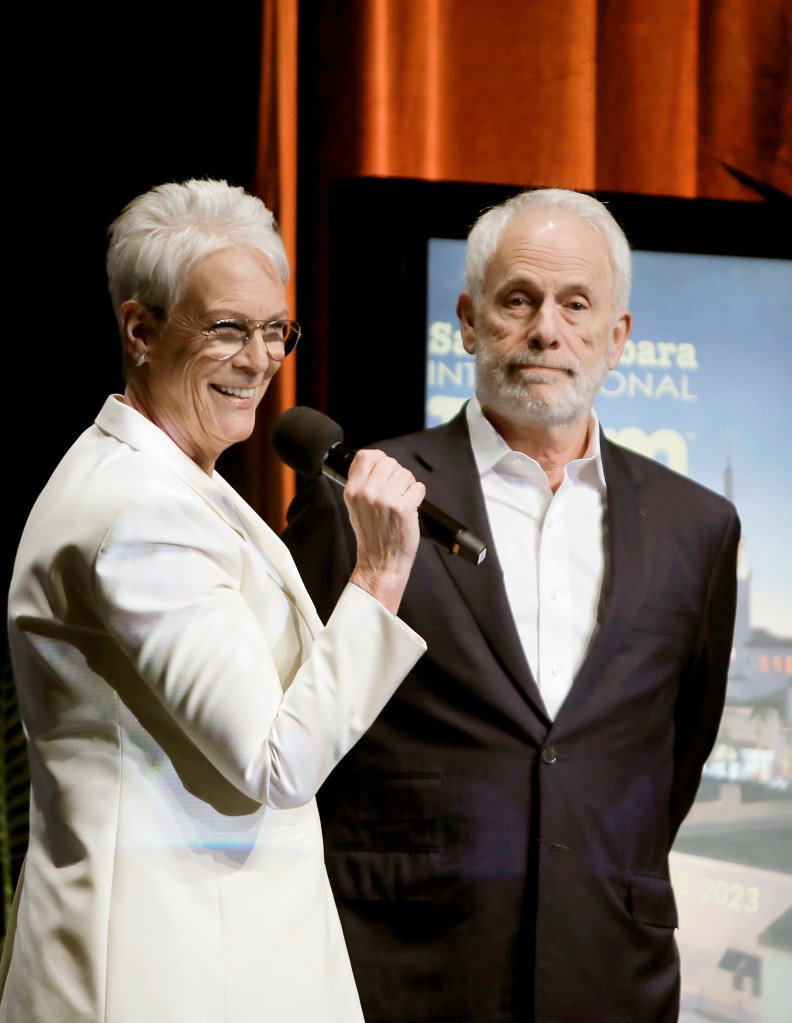 Christopher Guest presents his wife, Jamie Lee Curtis, with the Maltin Modern Master Award during the 38th annual Santa Barbara International Film Festival at the Arlington Theatre on February 11, 2023 in Santa Barbara, California. | Credit: Tibrina Hobson/Getty Images for SBIFF