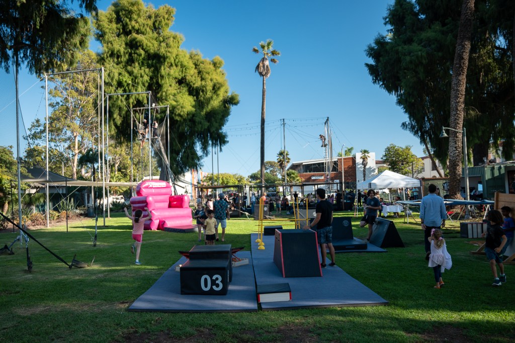 Families filled the Haley Street park, where trapeze performers held kids’ admiration and attention as they eagerly waited in line for a sky-high trapeze session of their own.