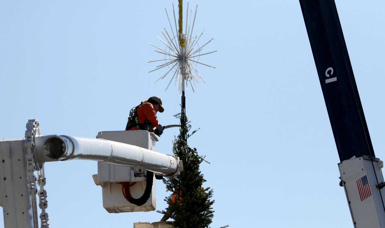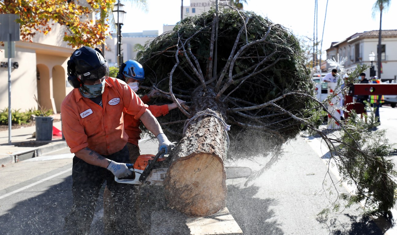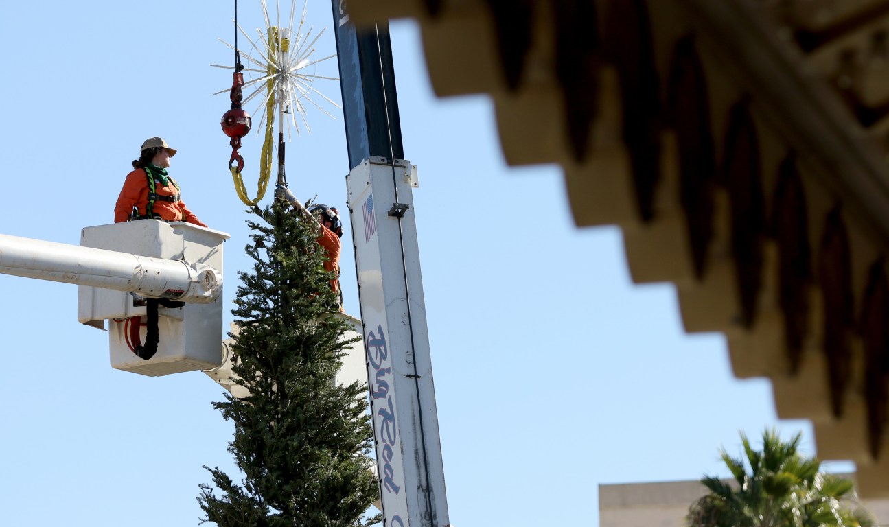 Downtown Santa Barbara ushered in the holiday spirit on Tuesday after it put up a 45-foot Douglas fir tree on the 1300 block of State Street.